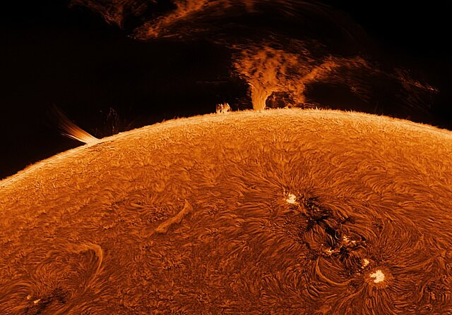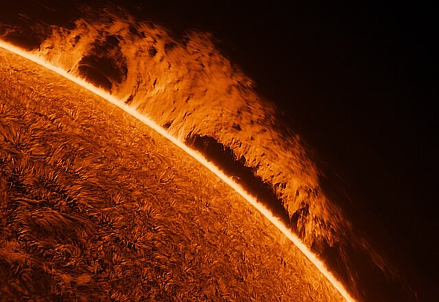 نکتهاي که در تصاوير قابل مشاهده است، فورانها و پرتابهاي شديد پلاسما از سطح خورشيد است که در پسزمينه آنها فضاهاي عميق سياه قرار دارد.