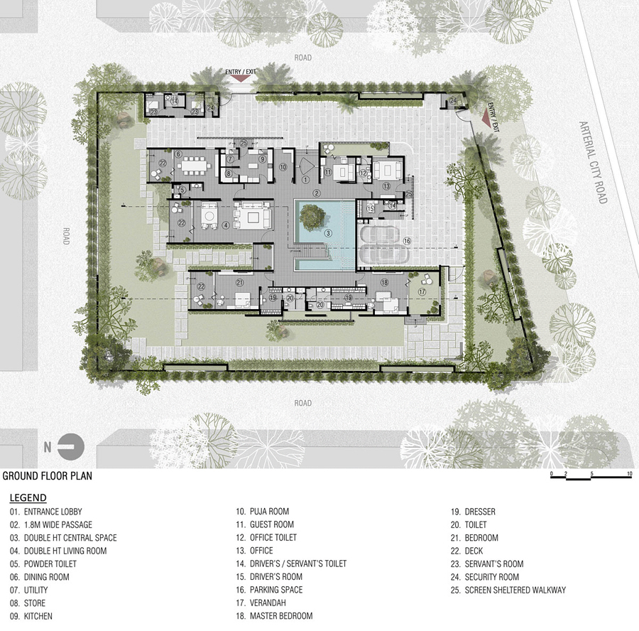 به گزارش گالري آنلاين، محل ساخت اين عمارت در امتداد يک شاهراه پر تردد واقع شده است و از سه طرف نيز در مجاورت توسعه بيش از حد خانه هاي شخصي قرار دارد. به همين دليل خانه ي بزرگ وصله اي ناهمگون به نظر مي آمد. شرکت معماري Sanjay Puri Architects براي حل اين مسئله نقشه اين خانه سفارشي را به چند بخش تقسيم کرد: فضاي نشيمن و خواب را در دو بخش مجزا در نظر گرفت که از ميان آن ها راهروهايي منتهي به حياط بزرگ براي جريان باد ملايم نشاط آور عبور مي کرد.