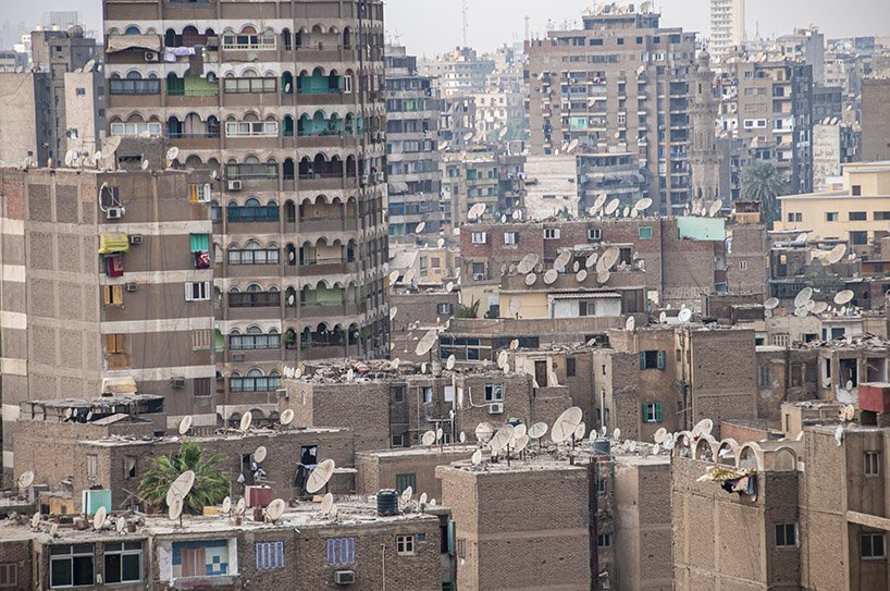 ديسترو در حين عکسبرداري متوجه شد که اين مسئله در شمال آفريقا مشخصه ساختمان ها تلقي مي شود تا بازتابي از زندگي ساکنان آن ساختمان باشد. از ساختمان هاي مدرنيست الجزيره که تحت تاثير لوکوربوزيه قرار گرفته اند تا ساختمان هاي ساده و کم مدعا در قاهره، اضافه شدن فزاينده بشقاب هاي ماهواره اي توسط ساکنين ويژگي ذاتي در معماري ايجاد مي کند که در ساير مناطق ديده نمي شود. اين ابتکار، با تبديل پشت بام و نماي ساختمان ها به نماي ريتم دار و در نتيجه شباهت آن ها به اثري هنري با فضاي " horror vacui " ( هراس از فضاي خالي)، محيط ساخت انسان را به عرصه هاي جديدي از تجسم تبديل مي کند.