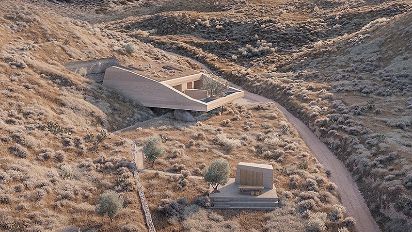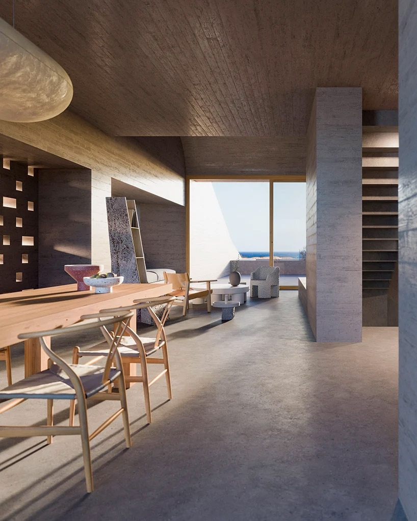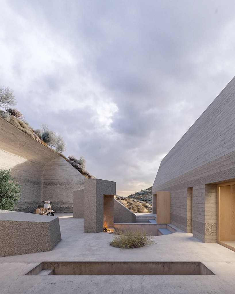 معماران kapsimalis مجموعه اي از دو خانه را در ورولوس، سانتوريني ارائه دادند، که از خود زمين الهام گرفته شده و به عنوان ابزاري براي طراحي در نظر گرفته شده است.