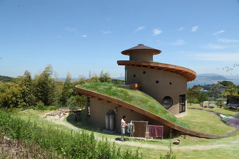 نگاهي بر خانه ي مارپيچ با باغ بام که در جزيره awaji در ژاپن ساخته شده است.