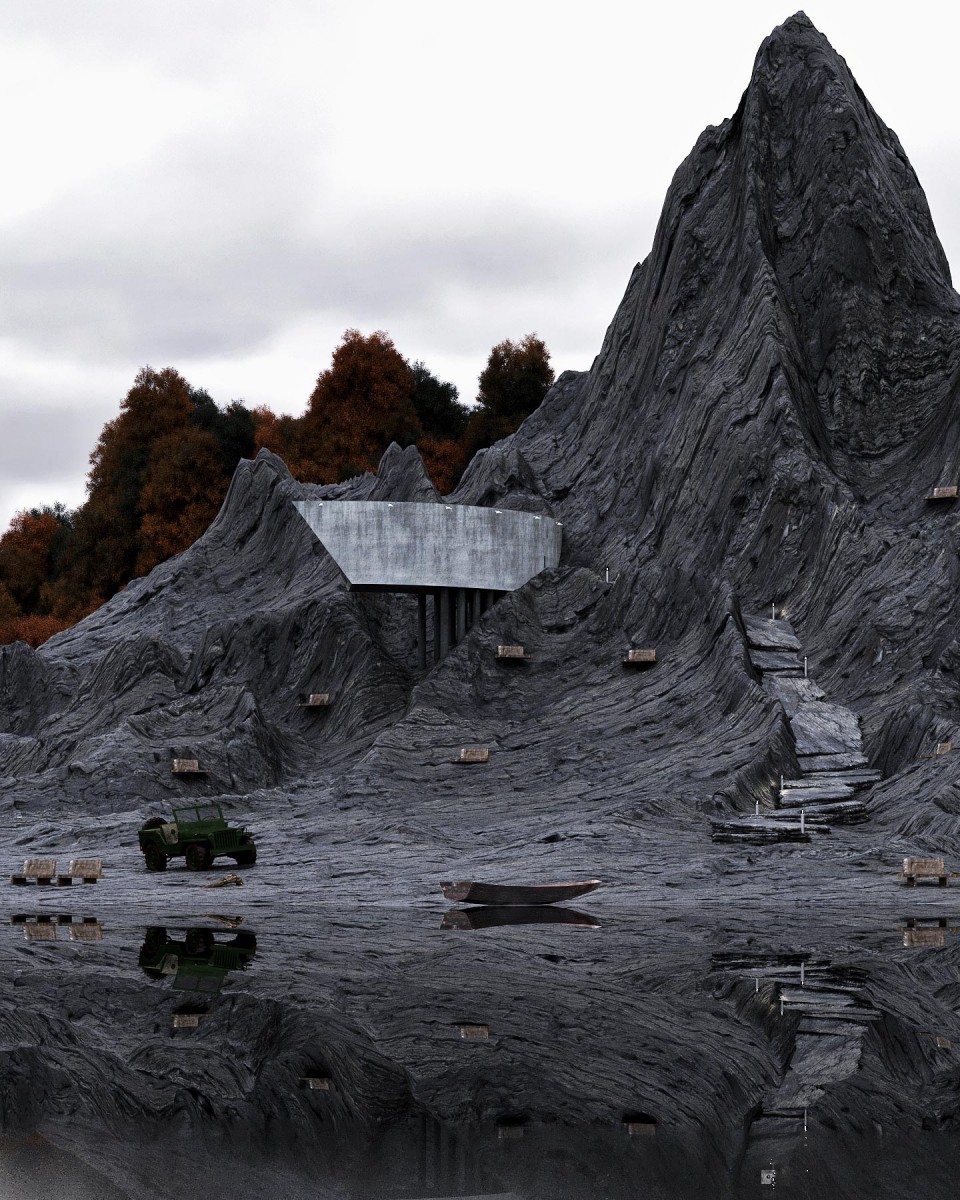 به گزارش گالري آنلاين، در سال هاي اخير، دنياي معماري به طور فزاينده اي در برگيرنده ي مفهوم طراحي ساختمان ها در دل طبيعت شده است. گرايش محتشمي براي ساختارهاي زمخت و غير قابل توصيف، در آخرين اثر وي، به سطح بالاتري رسيده است، که به صورت ساده آن را خانه ي بتني ناميدند.