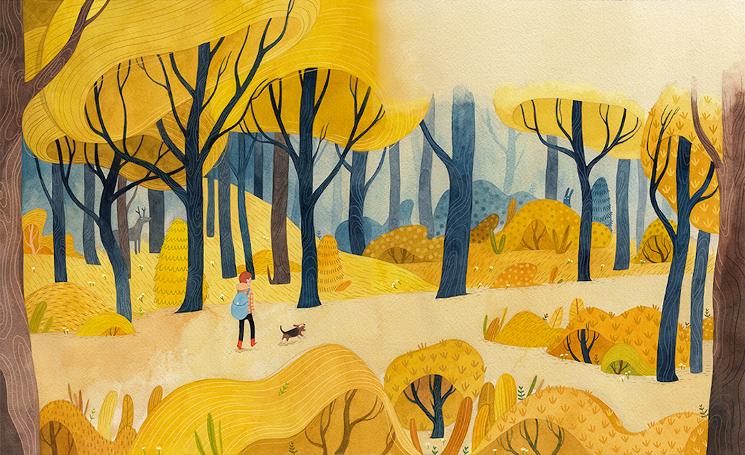 ه گزارش گالري آنلاين، هنرمند تصويرگر، Vivian Mineker، اين حس را با آبرنگ و مداد رنگي به تصوير مي کشد. شخصيت هاي او در ميان درختان تنومند و حتي گاهي اسرار آميزو شبح وار که اغلب در کنارشان حيواني خانگي آن ها را همراهي مي کند، به ماجراجويي مي پردازند.