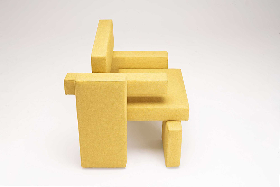 ترکيب جسورانه فرم هاي هندسي زرد رنگ در طراحي عناصر صندلي Dmytriy Sivak ويژگي هاي چشمگير بصري براي بيننده ايجاد کرده است.
