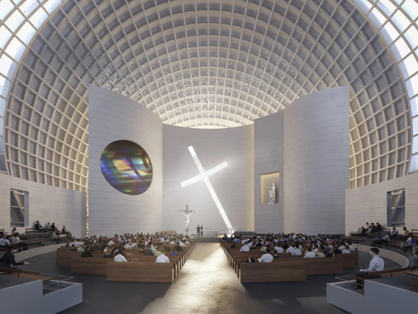 طراحي هر مکان عبادت مختص به تاريخ، آداب و رسوم و آيين هاي هر دين است. مسجد در محور مکه (به سمت غرب) قرار دارد. کنيسه، در محور رو به اورشليم. در حالي که کليسا رو به شمال قرار دارد. در طول روز، ساختمانها نور فيلتر شده را به وجود مي آورند، در حالي که در شب، سازه هاي مشبک مانند فانوسهاي غول پيکر مي درخشند. از آنجا که سه سالن از يک متدولوژي ساخت و ساز مشترک استفاده مي کنند، يک کل يکپارچه را تشکيل مي دهند.
