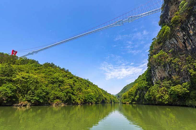 به گزارش گالري آنلاين، با ابعاد خيره کننده 1726 فوت (526.14 متر)، اين طرح پل توسط  گروه معماري UAD رکورد هاي جهاني گينس را به عنوان طولاني ترين پل با کف شيشه در جهان شکست.
