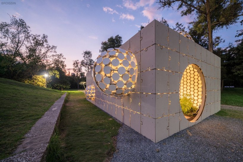 به گزارش گالري آنلاين، حجم ساخته شده با اجزاي بتني، هر دو سيستم معماري منطقي و پارامتري را تداعي مي کند در حالي که محيط داخلي جنگل ابر کوچک را در داخل آن حفظ مي کند.