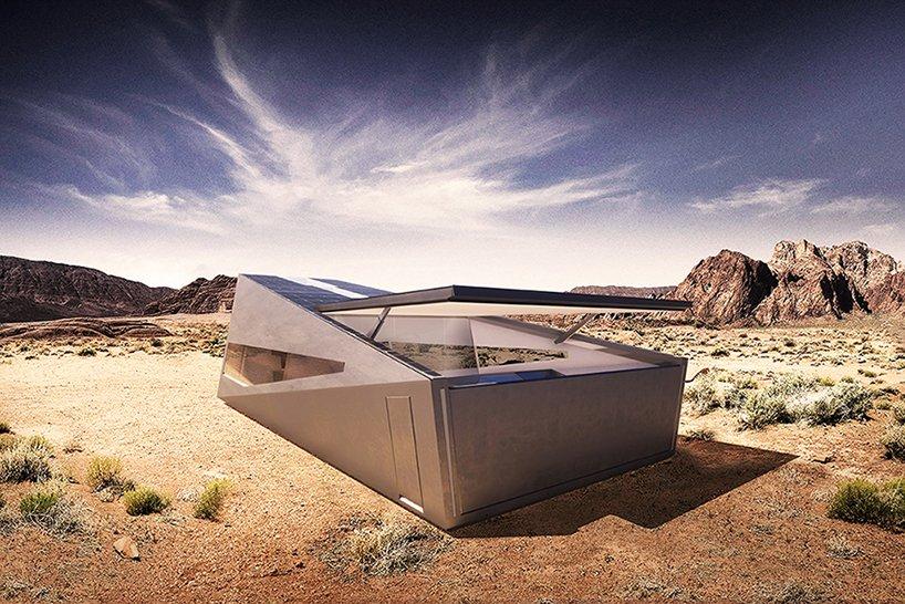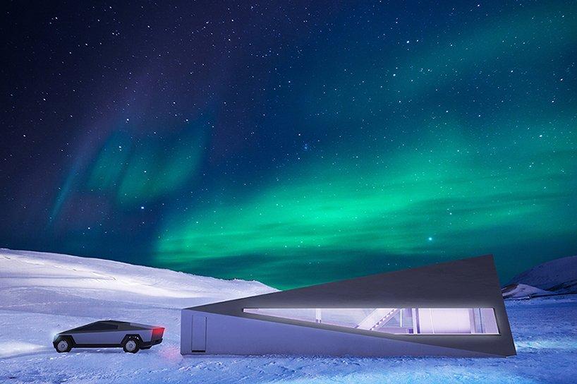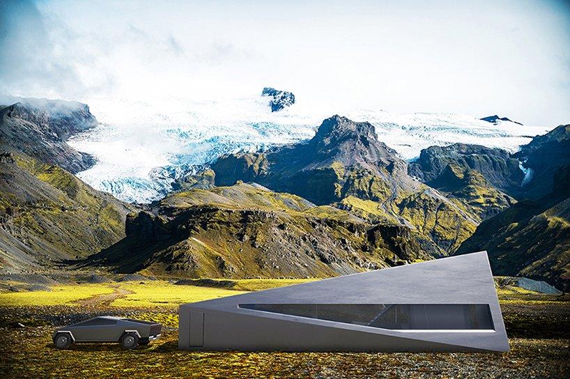 استوديوي LARS BÜRO مستقر نيويورک يک گاراژ در فضاي خارج شهر براي اسکان cybertruck تسلا طراحي کرده است.