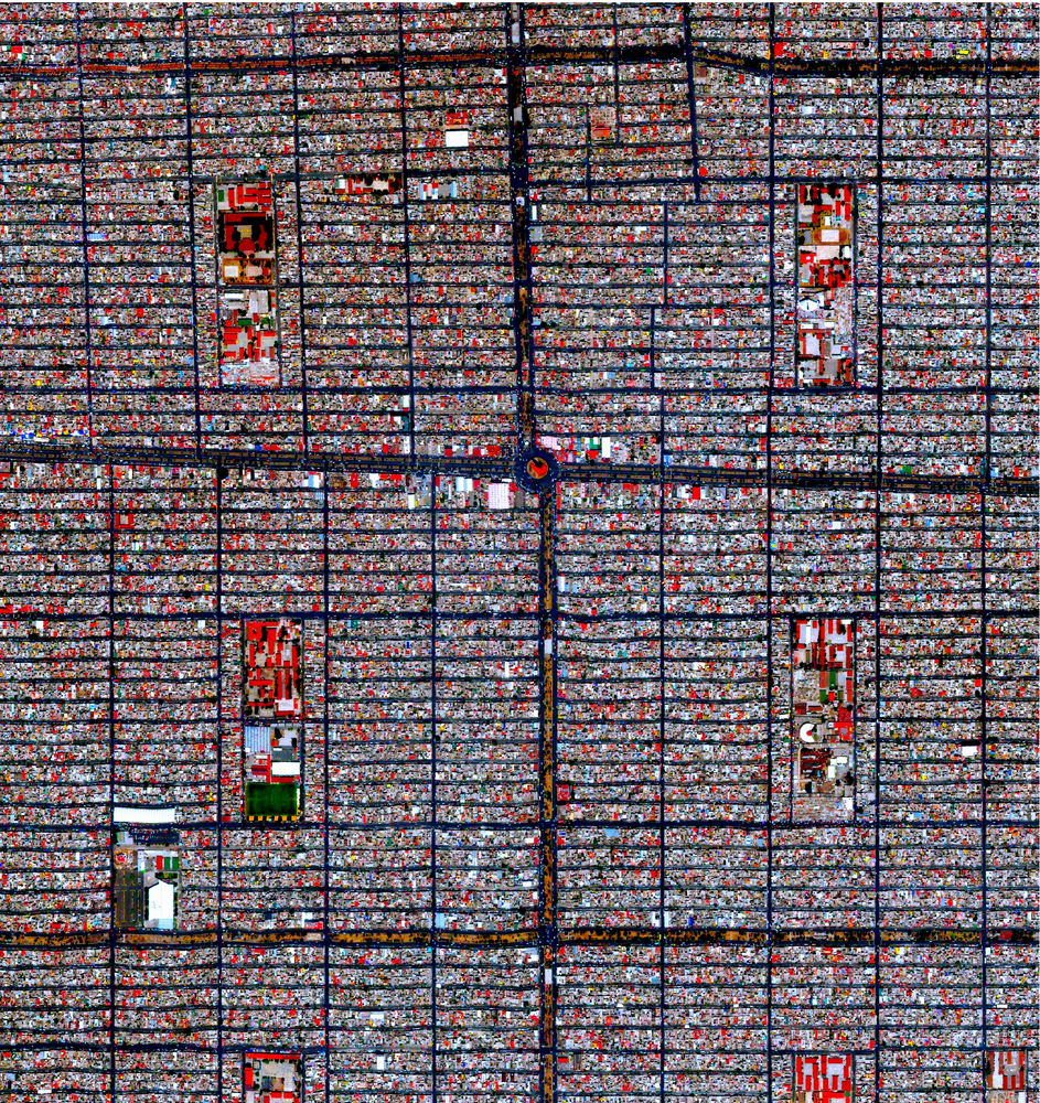 به گزارش گالري آنلاين، خيابان ها با زاويه قائم يکديگر را قطع مي کنند و در نتيجه شبکه اي شطرنجي از خيابان ها، کوچه ها، بلوک ها، ميادين و پارک ها در ميان ساير فضا هاي شهري ايجاد مي شود.