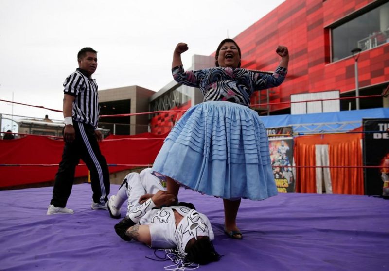 کشتي گير کوليتا، پيروزي خود را در ال آلتو، نزديک لاپاز جشن ميگيرد. مبارزان زن بوليوي پس از ۹ ماه وقفه به دليل محدوديتهاي ويروس کرونا به رينگ مسابقات بازگشتند.