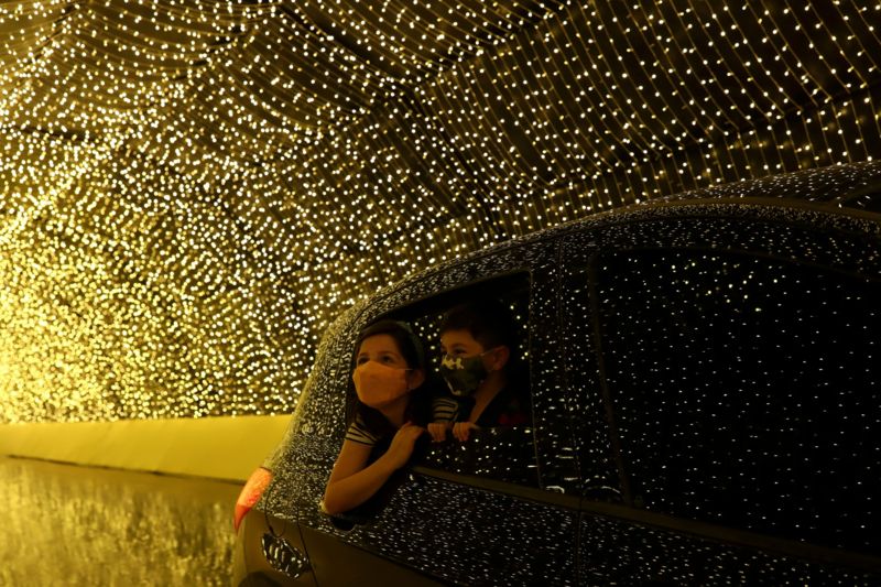 کودکان هنگام بازديد از يک جشنواره نور کريسمس در سائوپائولو برزيل، از داخل ماشين به چراغها نگاه ميکنند.