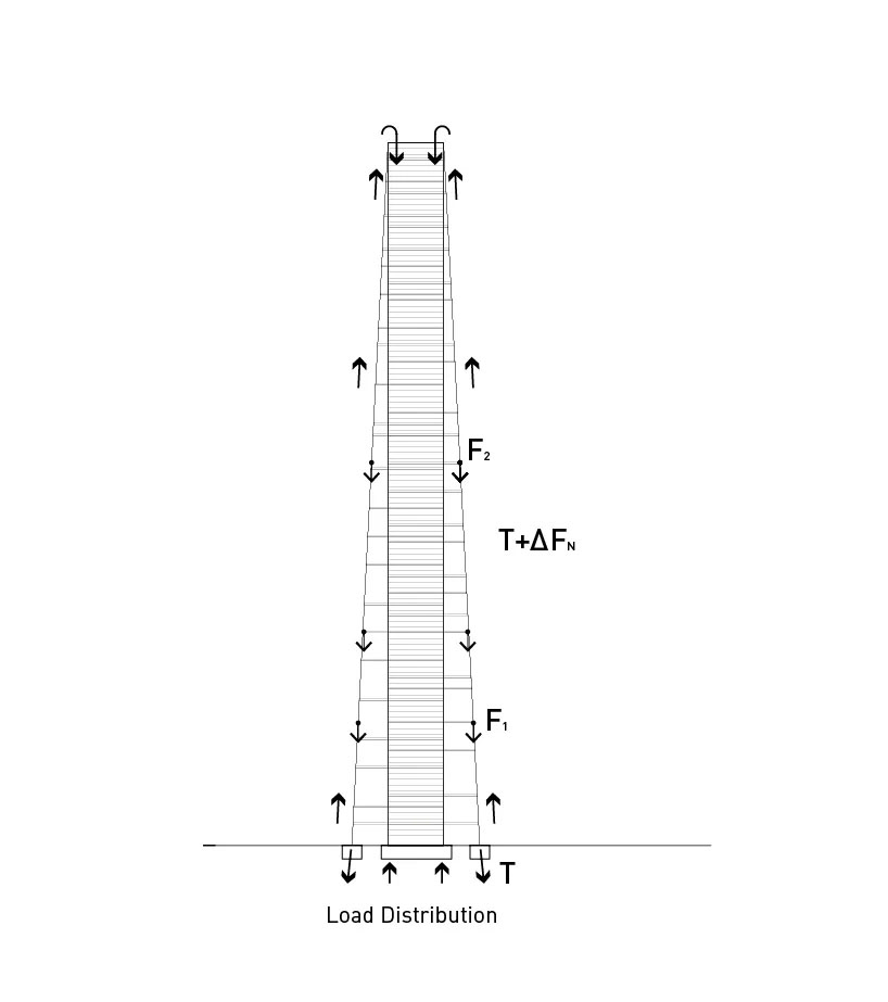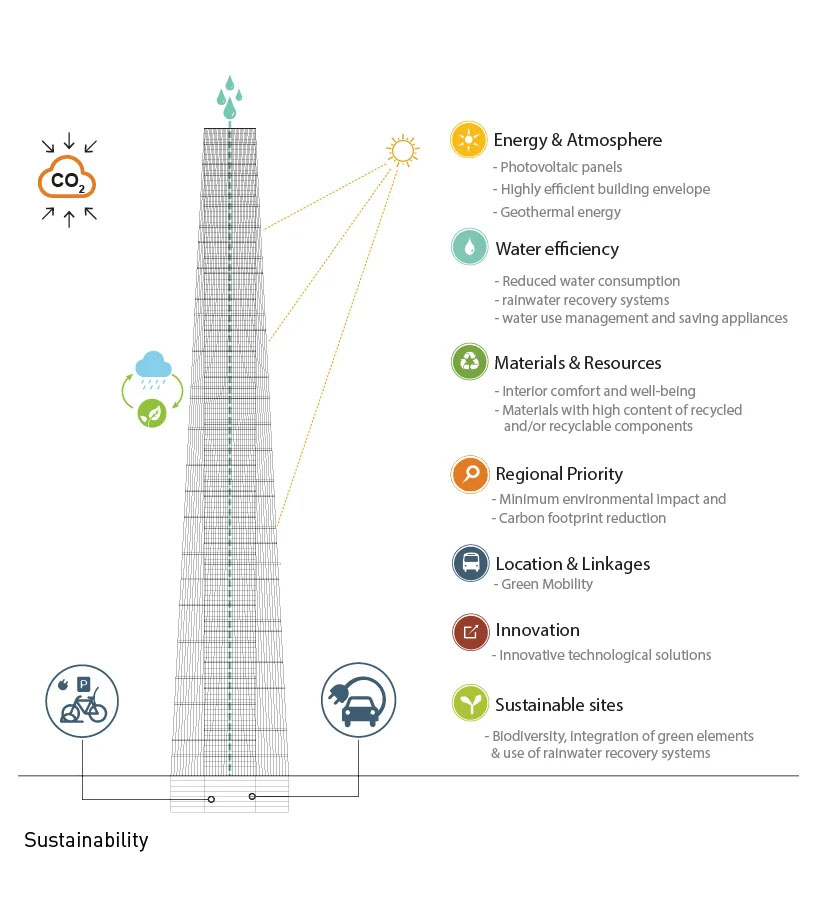 برج براي به حداکثر رساندن عملکرد فضاي داخلي و خارجي و تضمين بازده ساختاري پيکربندي شده است.