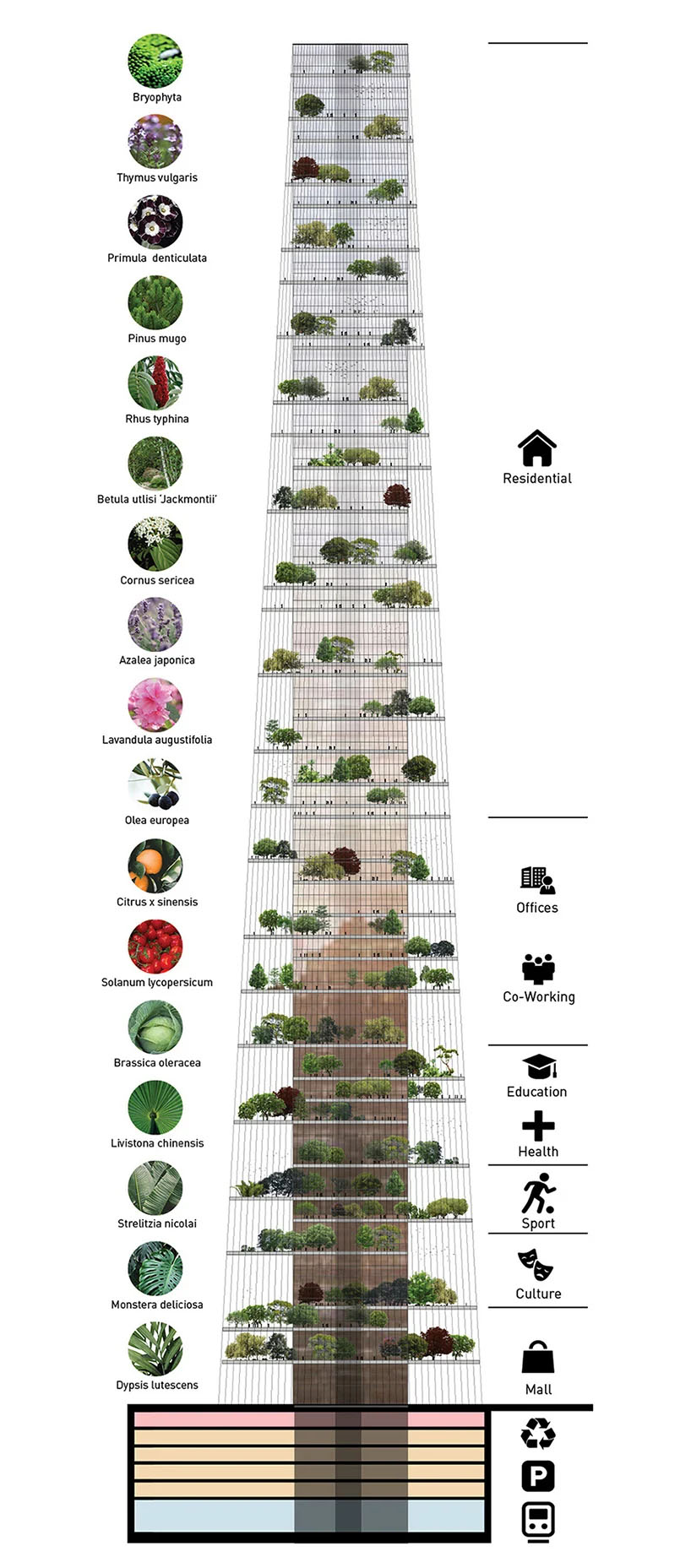 با الهام از طبيعت، اين مفهوم نه تنها يک ساختمان، بلکه يک اکوسيستم کامل و خودکفا ارائه مي دهد.