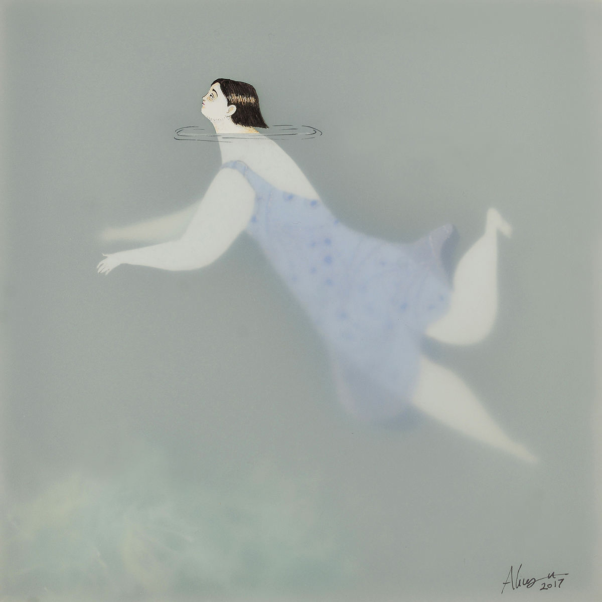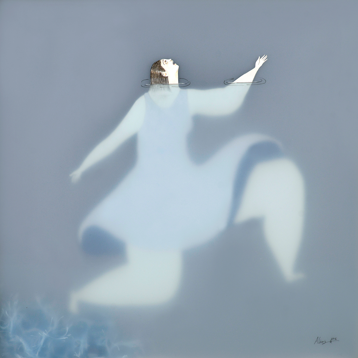 دنيايي زير آب فضايي پر از تناقض است و ميتواند در عين آرامش سرشار از پريشاني و اضطراب شود. سونيا آلينس هنرمند تصويرگري است که به ارتباط اين دو فضا در آثارش مي پردازد.
