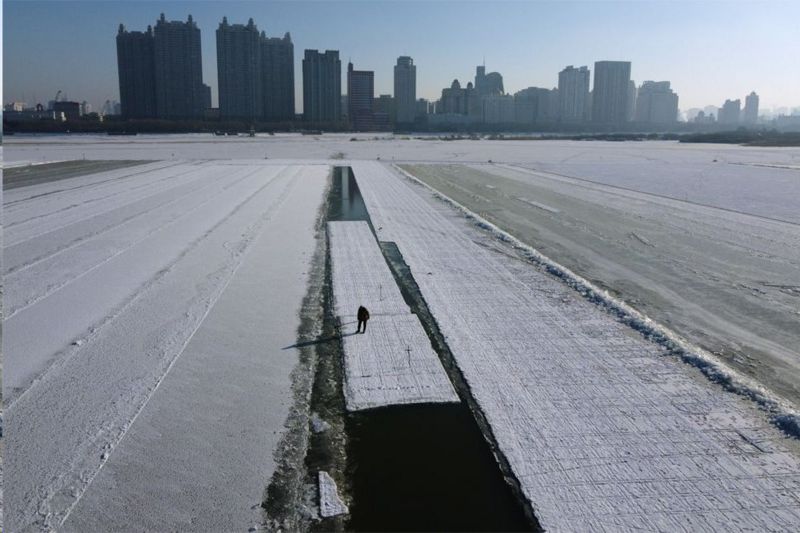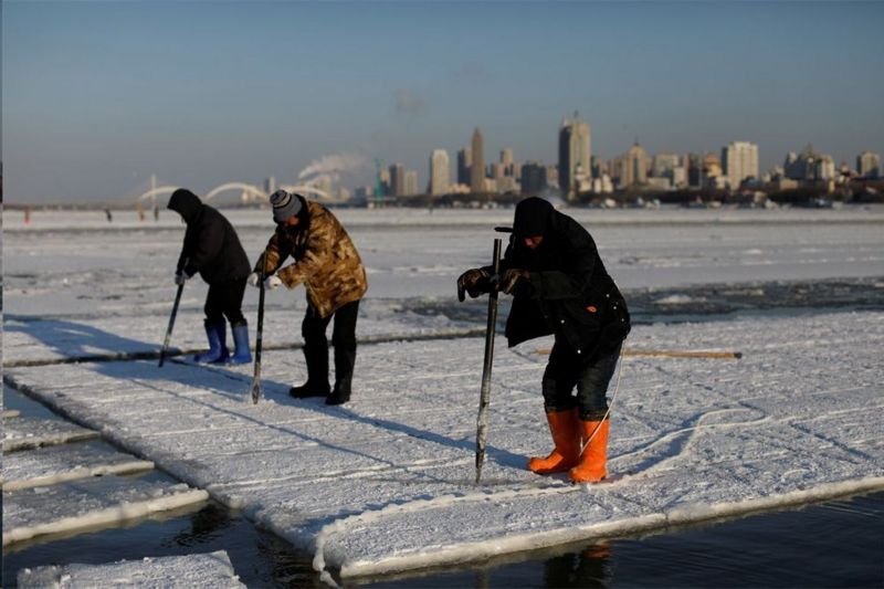 وانگ کيوشنگ به خبرگزاري رويترز گفت "ما هر روز ساعت ۶ صبح شروع به کار استخراج يخ ميکنيم".