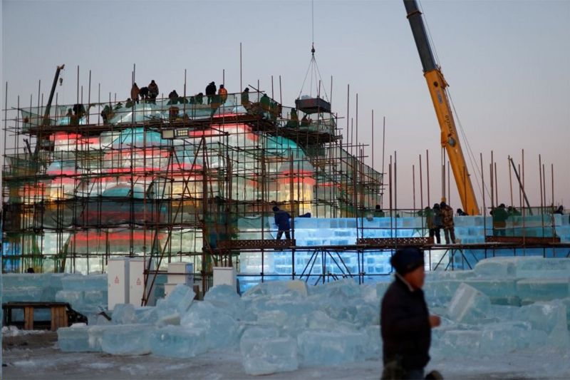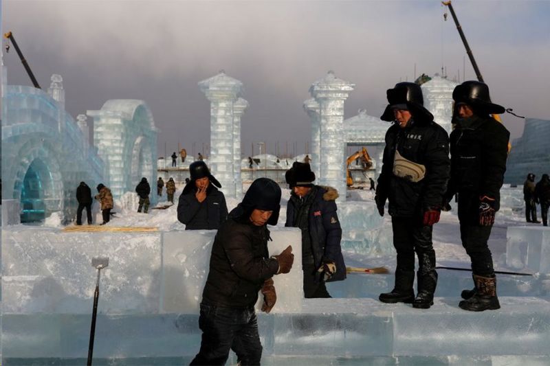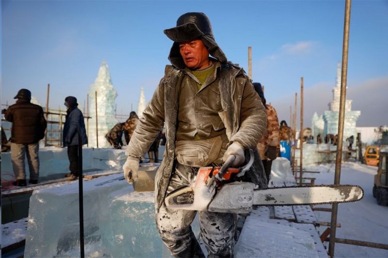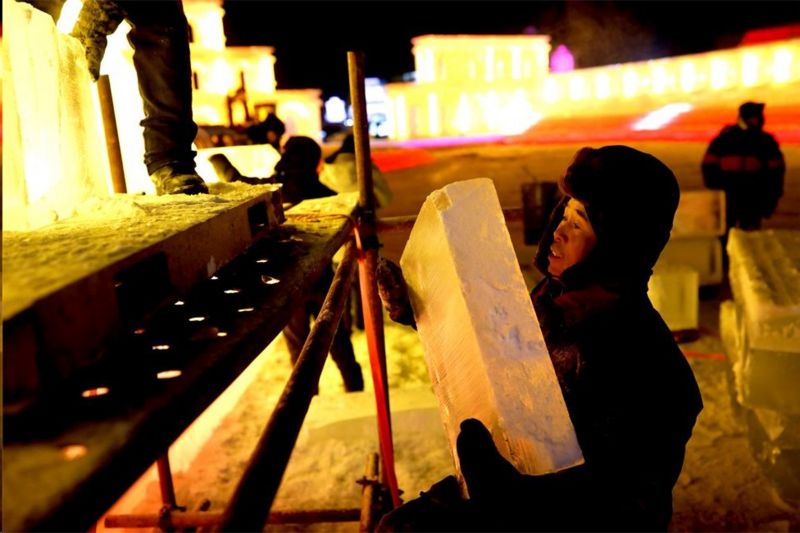 در دسامبر گذشته، حدود ۳۰۰ "معدنچي يخ"، که بسياري از آنها کارگران ساختماني و کشاورز بودند، سازههاي سر به فلک کشيده يخي اين جشنواره را ساختند.