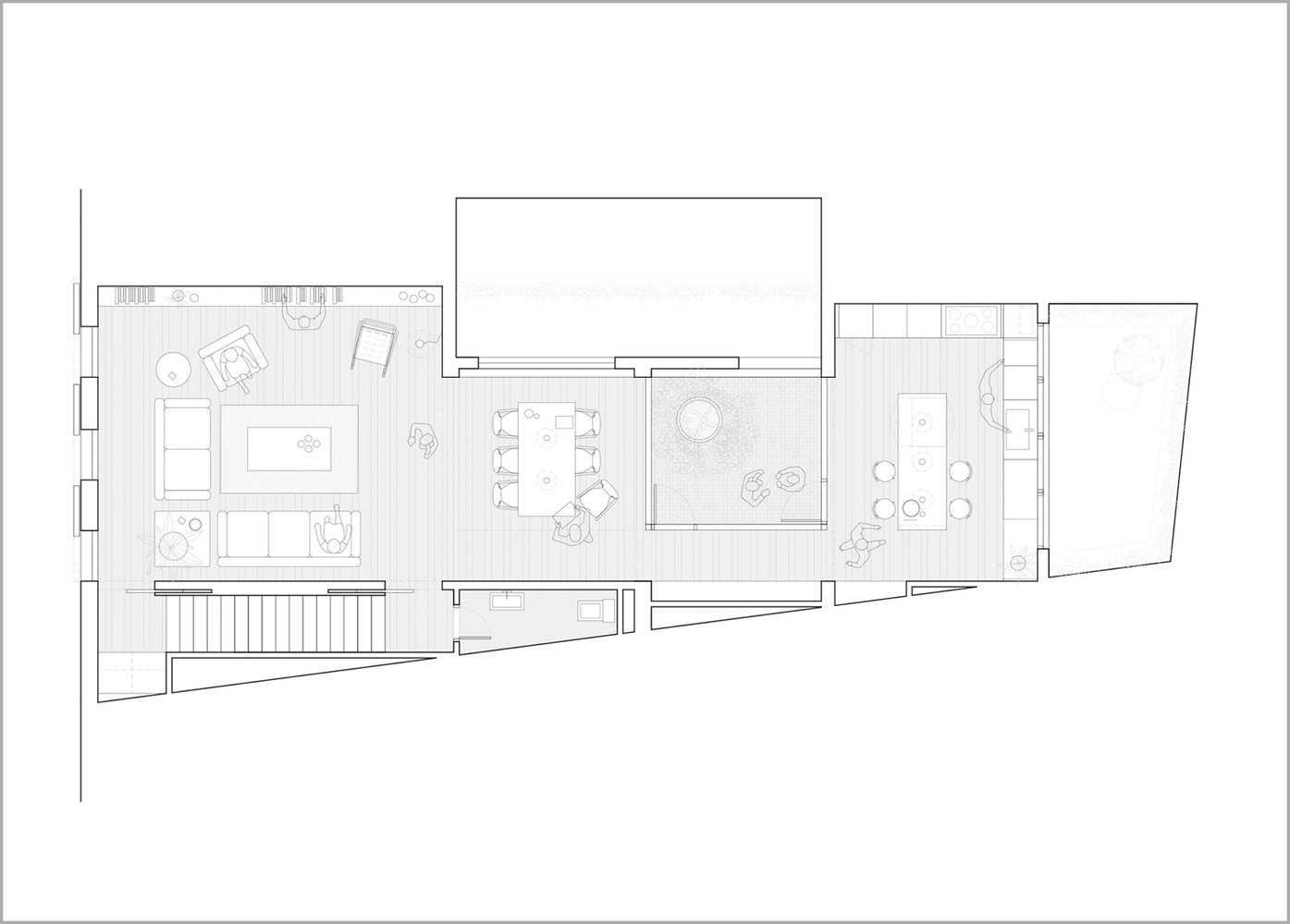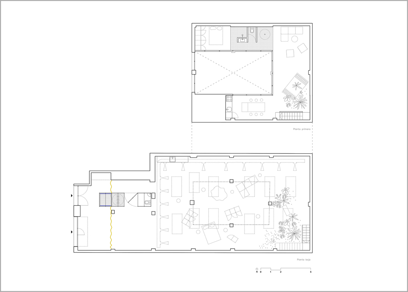 "اين بناي دو طبقه در بين دو ديوار مشترک در منطقه Gràcia شهر بارسلون قرار دارد. بناي اصلي به عنوان انباري در دهه 1960 توسط يکي از اعضاي خانواده يا صاحبان فعلي ساخته شده است. بيشتر ويژگي هاي صنعتي ساختمان در حين مرمت و بازسازي حفظ شده و ديوارهاي اطراف براي محافظت از تجهيزات داخلي ساختمان با تيرهاي آهني تقويت شده اند. هدف از اين پروژه تبديل فضاي سرد و بي روح صنعتي به فضاي گرم و دلچسب مسکوني است.