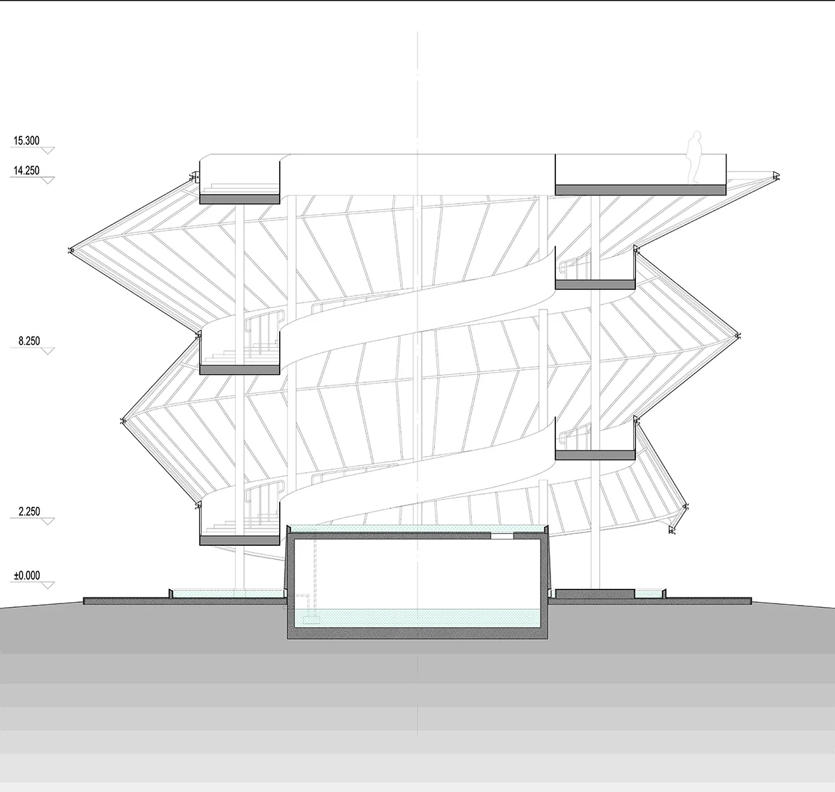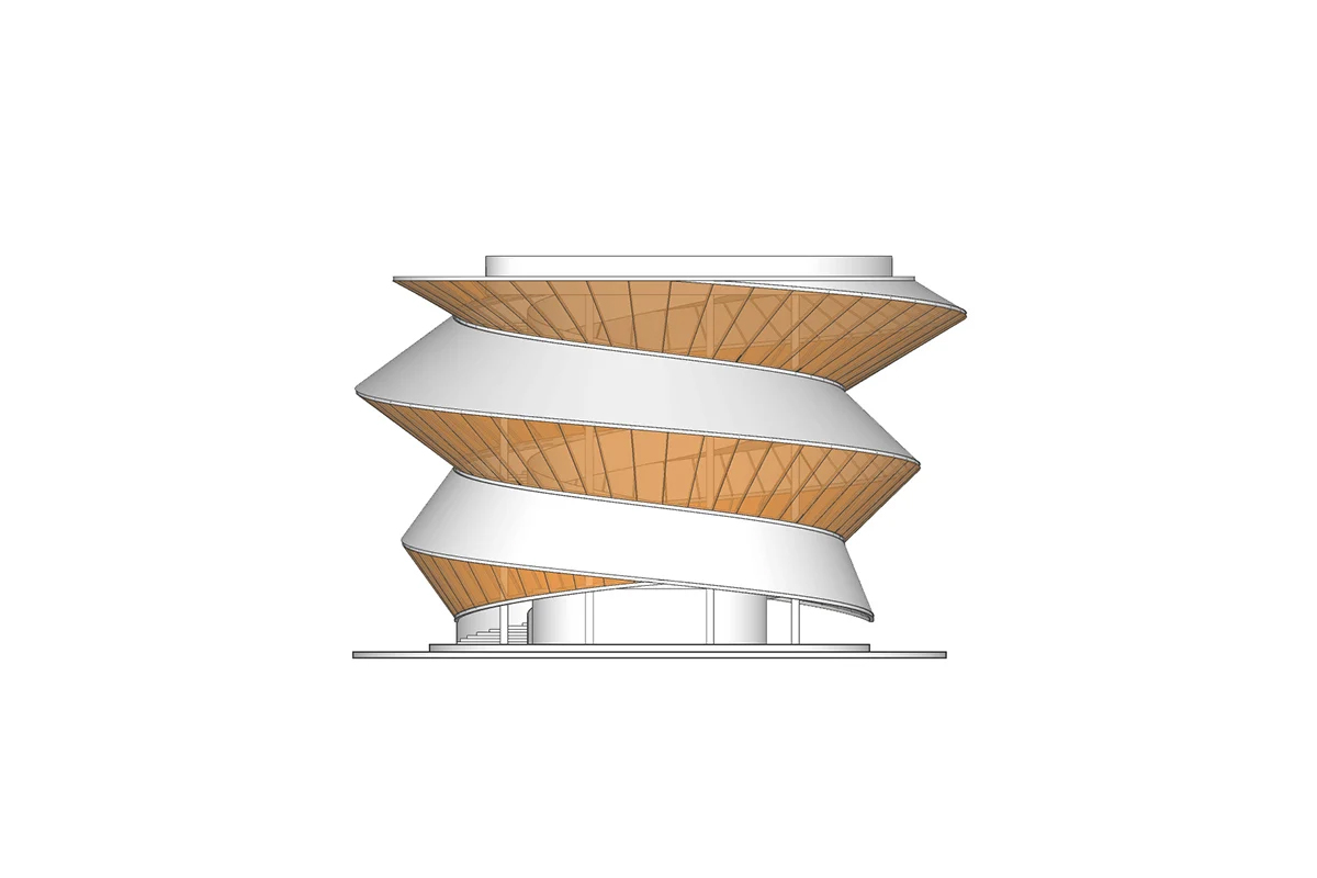 برج مارپيچ، توسط doarchi يک معراج آهسته و تدريجي را ايجاد مي کند. با ورود به ساختار نسبتاً باريک، بازديدکنندگان با فضاي داخلي گيج کننده و پر از نور روبرو مي شوند که ارتفاع فضا را گسترش مي دهد.
