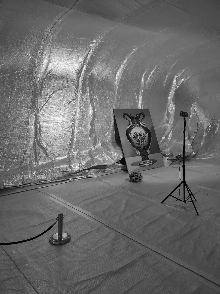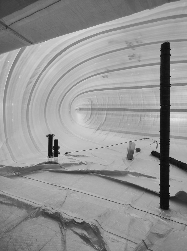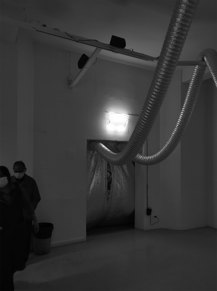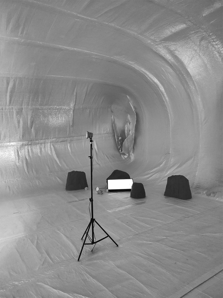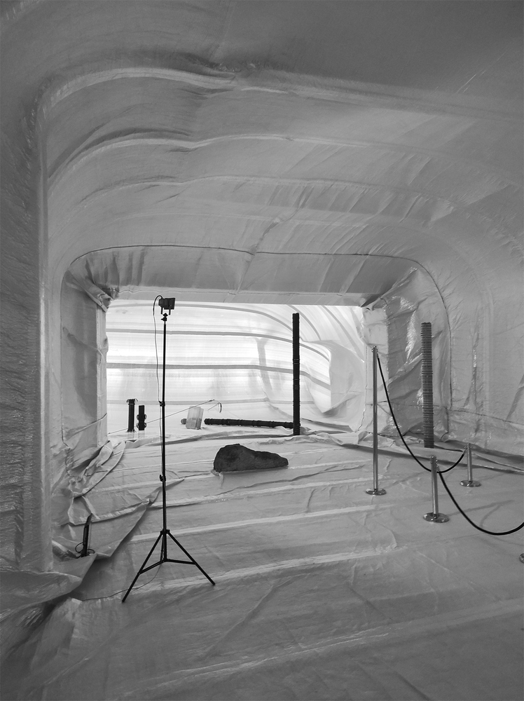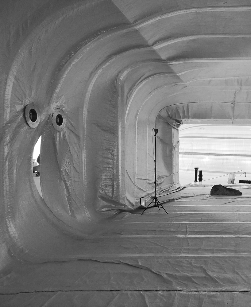 اکنون طبقه هم کف و سقف گالري پوشيده شده از کارهاي اين هنرمند و ما را به دنياي ديگري مي برند. علاوه بر اين، وقتي داخل بالشت ميشويم، سايههاي در حال حرکت بيرون گالري قابل رويت است.
