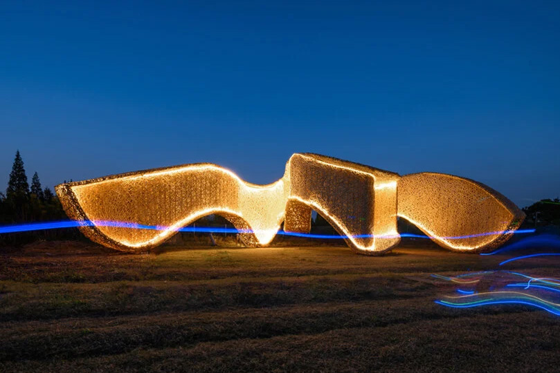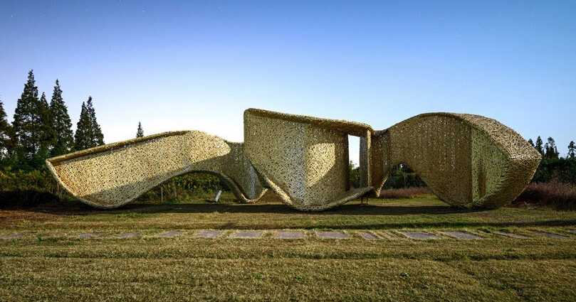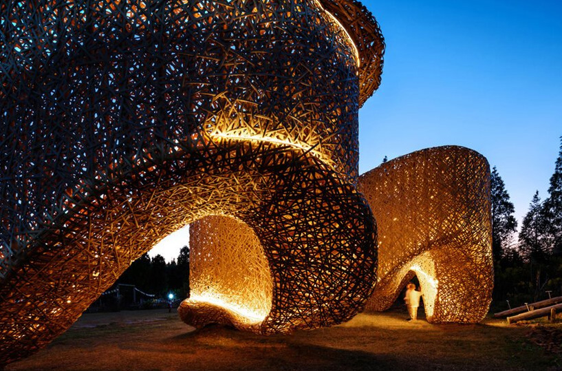 هنرمند چيني Lin architecture به دنبال يک محيط روستايي ميگردد تا غرفه بامبوي پويا و درخشان خود را در آنجا قرار دهد.
