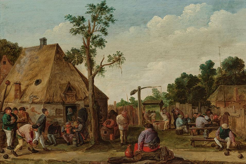 حياط ميخانه با کاسه بازي ، اواسط دهه 1620. آدريان بروور (فلاندري، 1606-1638) روغن روي تابلو. مجموعه مايدا و جورج آبرامز – هديه جزئي  با بودجه اهدايي رز ماري و اييک ون اوترلو براي حمايت از مرکز هنر هلندي. عکس © موزه هنرهاي زيبا، بوستون.