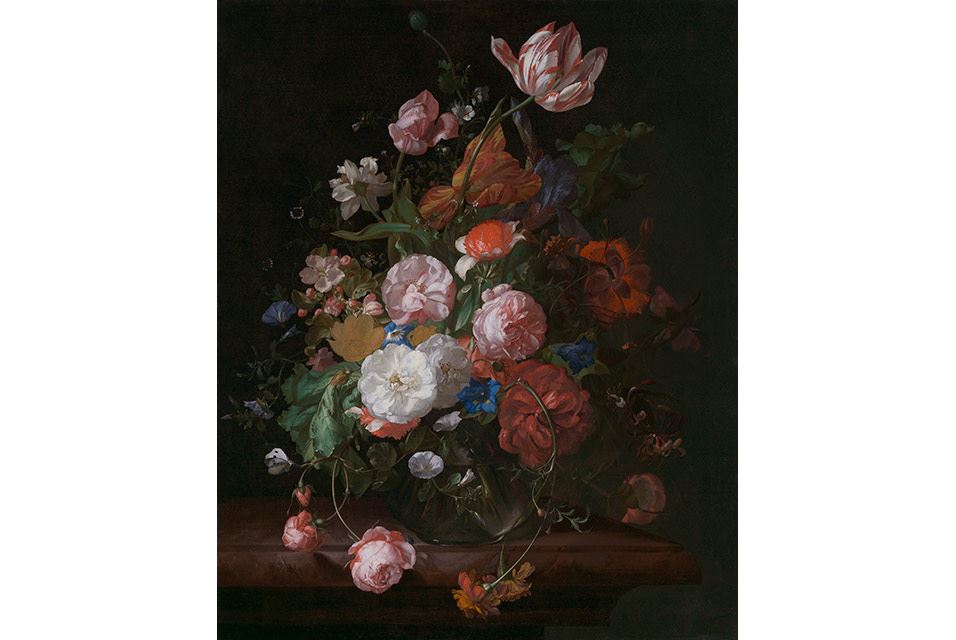 زندگي بي جان با گل ها، 1709. راشل رويش (هلندي، 1664–1750) تابلو رنگ روغن. هديه موعود رز ماري و اييک ون اوترلو، در حمايت از مرکز هنر هلند. با احترام، موزه هنرهاي زيبا، بوستون.