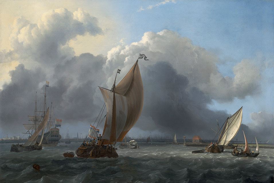 کشتي‌ها در يک باد در IJ قبل از شهر آمستردام، 1666. لودولف باخويزن (هلندي، 1631–1708)تابلو رنگ روغن. موزه هنرهاي زيبا، بوستون. هديه رز ماري و اييک ون اوترلو در حمايت از مرکز هنر هلند. عکس © موزه هنرهاي زيبا، بوستون.