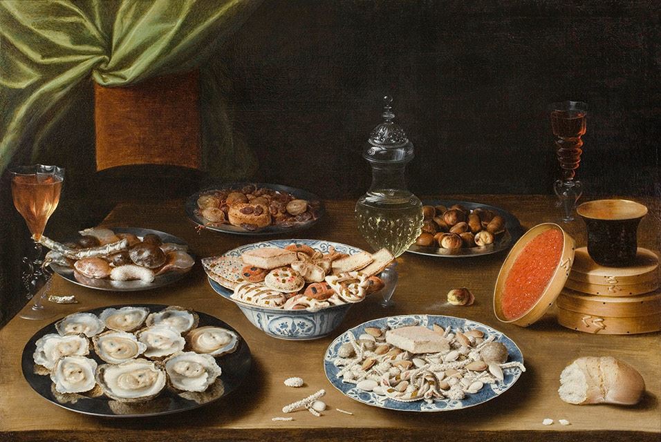 طبيعت بي جان با رگ هاي مختلف روي ميز، حدود 1610. Osias Beert (فلاندري، حدود 1580–1623)تابلو رنگ روغن . هديه موعود سوزان و متيو ودربي، در حمايت از مرکز هنر هلند. با احترام، موزه هنرهاي زيبا، بوستون.