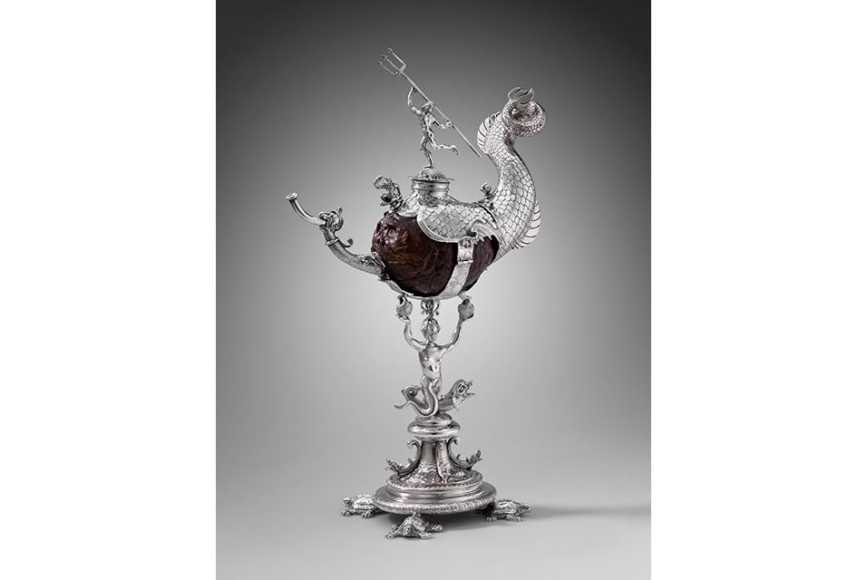 فنجان نارگيل سرپوشيده، 1607. فردريک آندريس (هلندي، 1566–1627) نقره، نارگيل. هديه رز ماري و اييک ون اوترلو، به افتخار توماس اس. ميچي، و در حمايت از مرکز هنر هلندي. عکس © موزه هنرهاي زيبا، بوستن