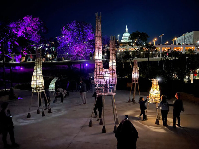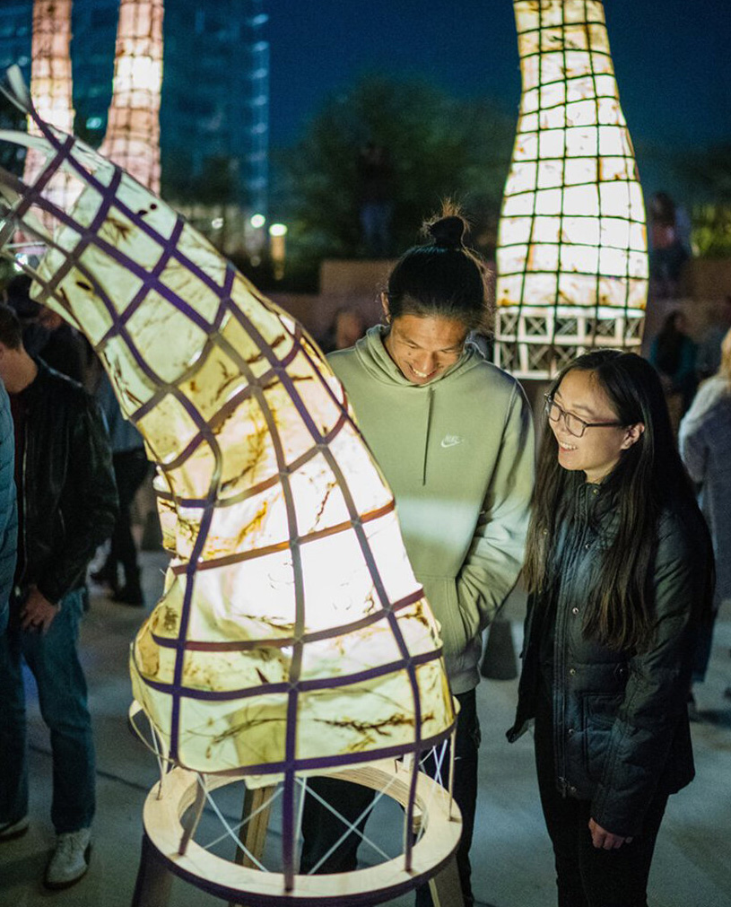 فانوسهاي BioNest توسط کارگاه چند رشتهاي wevolve براي نمايش creek 2021 در آستين، تگزاس ايجاد شدند.