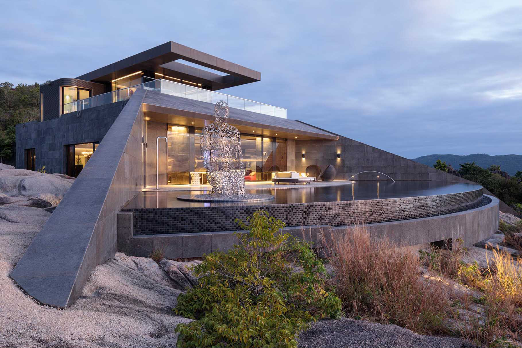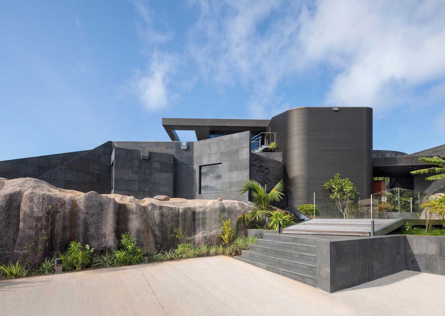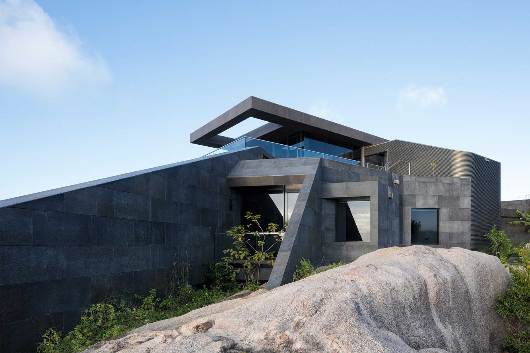 به گزارش گالري آنلاين، خانهها که در محيط اطراف خود بهعنوان اشکال هندسي خطي برميخيزند، بر روي صخره هاي گرانيتي فرسوده قرار گرفتهاند که عناصر چشمانداز محلي هستند.