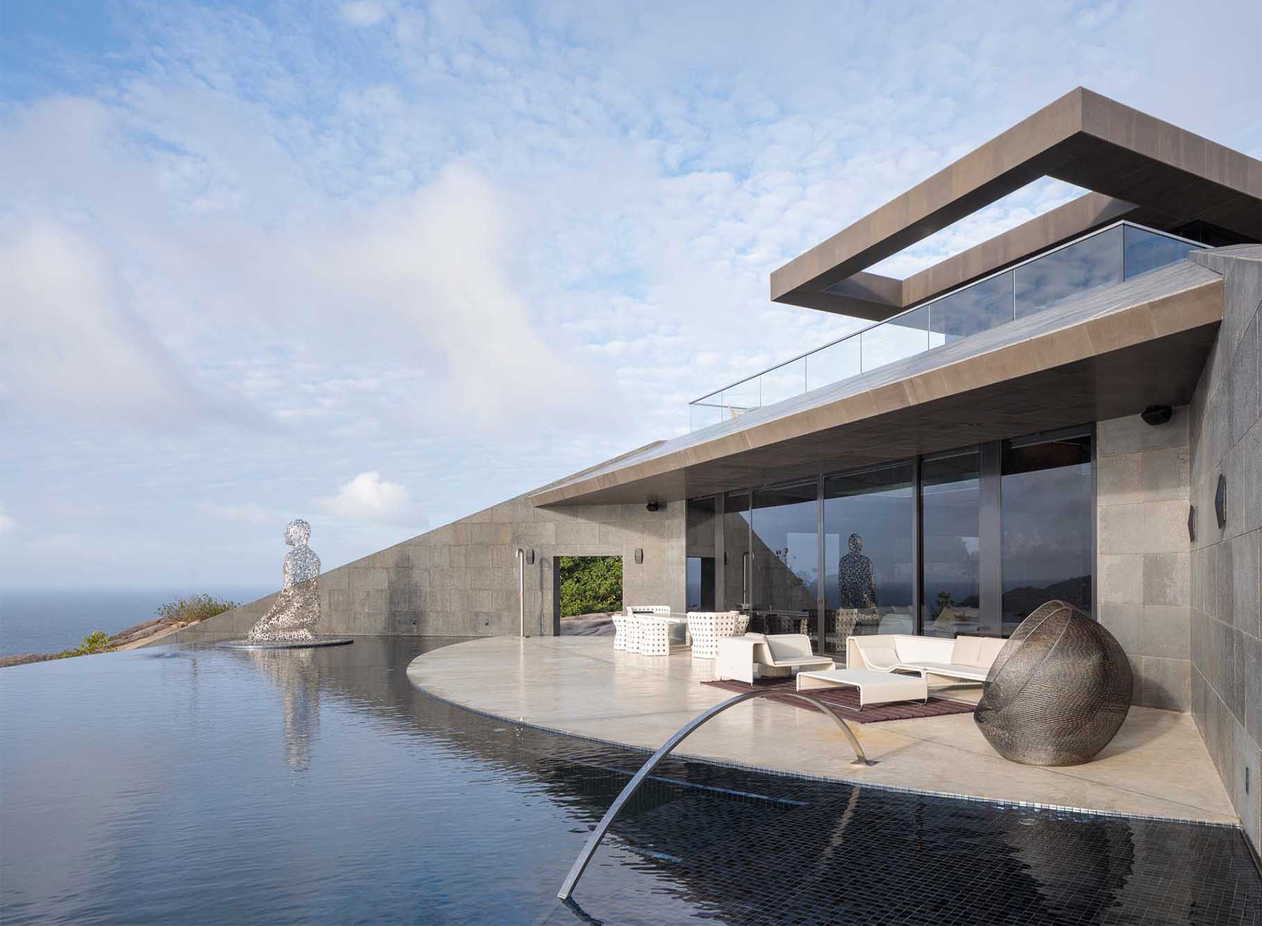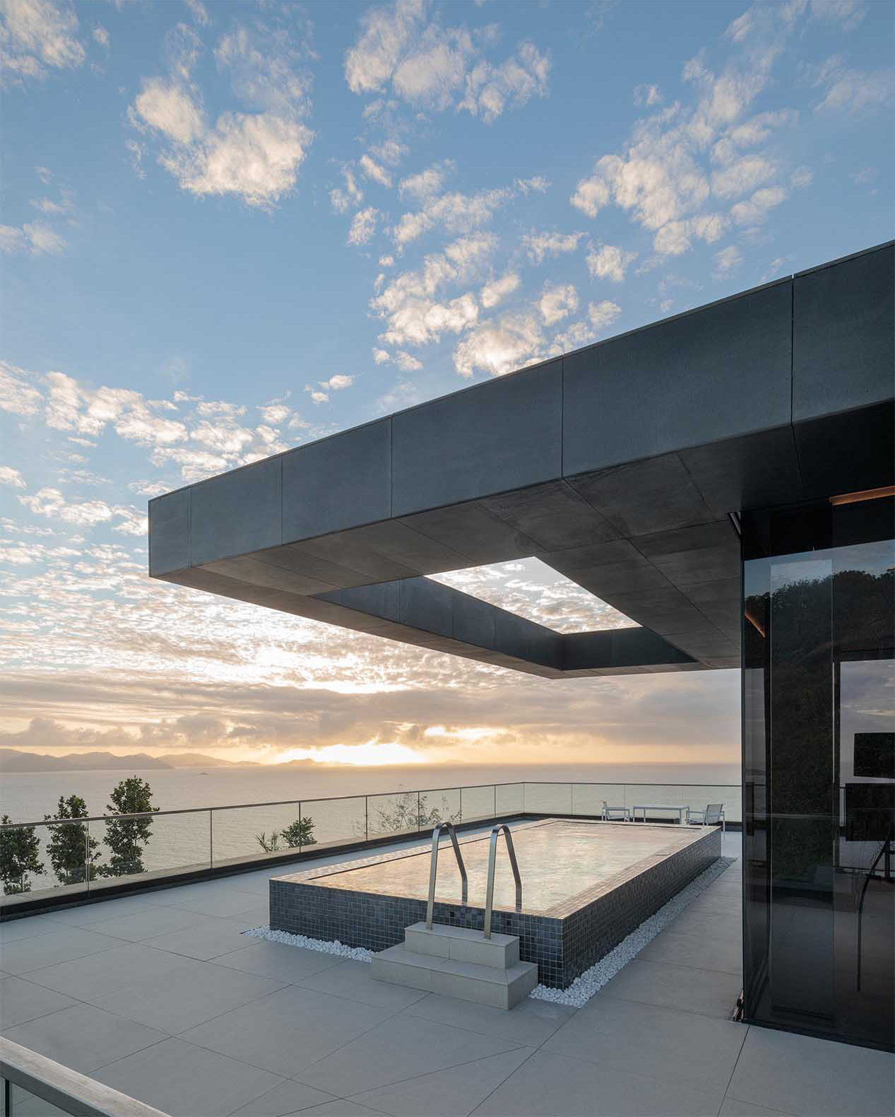 نور مستقيماً از داخل استخرهاي شنا با نور بالا که برخي از آنها داراي طراحي لبه بي نهايت منحني هستند، به سمت پايين فيلتر مي شود.