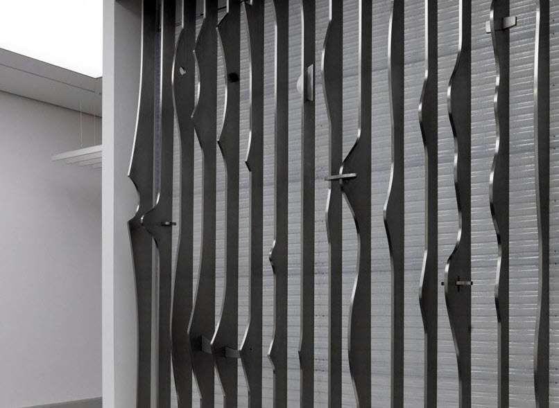 نتايج را مي توان در نمايشگاه با «آبشار، 666 خيابان پنجم، نيويورک» (57-1956) که در يک طرف اتاق کاشته شده است، مشاهده کرد. ستون هاي فولادي تزريق شده به سازه سيماني کف تا سقف، امواج موجي را از دور تشکيل مي دهند، ديد را فريب مي دهند و جادويي را ايجاد مي کنند که نوگوچي مي خواست به ذهن بينندگان القا کند. نماي پشتههاي کوه، خمها و جريانهاي فولاد را شکل ميدهد تا فوران آب از بالا را نمايان کند.