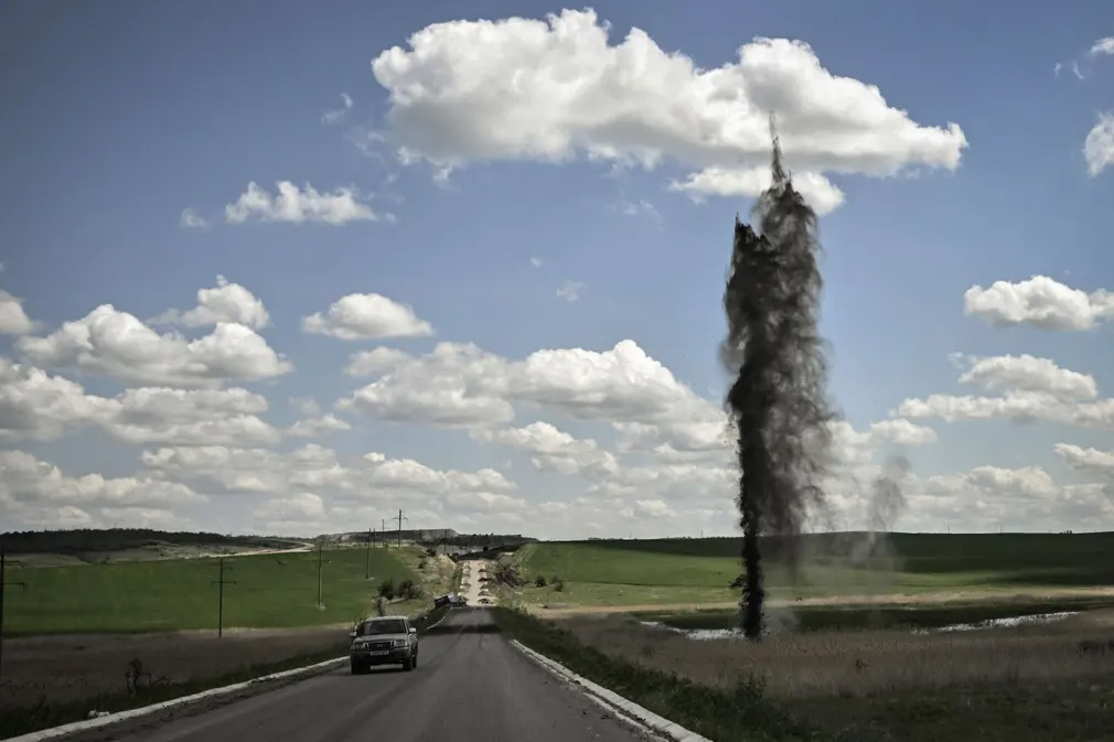 خمپاره اي در کنار جاده منتهي به شهر Lysychansk در منطقه Donbas منفجر مي شود. در حالي که ارتش اوکراين روز پنجشنبه گزارش داد که ۴۰ شهر در منطقه Donbas تحت بمباران روسيه قرار دارند، Sergiy Gaiday فرماندار Luhansk جنگ در خارج از Sievierodonetsk را که يک هدف نظامي کليدي «بسيار دشوار» براي روسيه توصيف کرد.