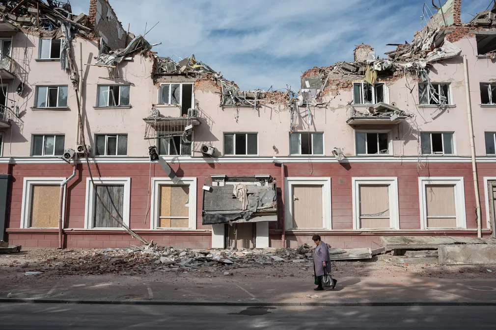 زني در کنار هتل به شدت آسيب ديده اوکراين راه مي رود. Chernihiv پس از حمله ۲۴ فوريه سال ۲۰۲۲ ميلادي هدف اوليه حمله روسيه بود. نيروهاي روسيه در حالي که نتوانستند شهر را تصرف کنند، به بخش هاي بزرگي از آن و منطقه اطراف آسيب زدند.