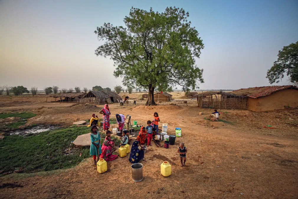 روستاييان آب را از يک پمپ دستي خرابي در روستاي Garhwa جمع آوري مي کنند. به گفته دانشمندان، موج گرمايي که هند و پاکستان را مي سوزاند، به دليل بحران اقليمي ۳۰ برابر بيشتر محتمل شده است.