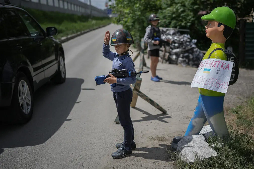 دوستان اوکرايني Andrii و Valentyn، نقش سرباز را در ايست بازرسي موقت در روستاي خود بازي ميکنند. پسران براي عبور رانندگان در Stoyanka شناخته شده اند.