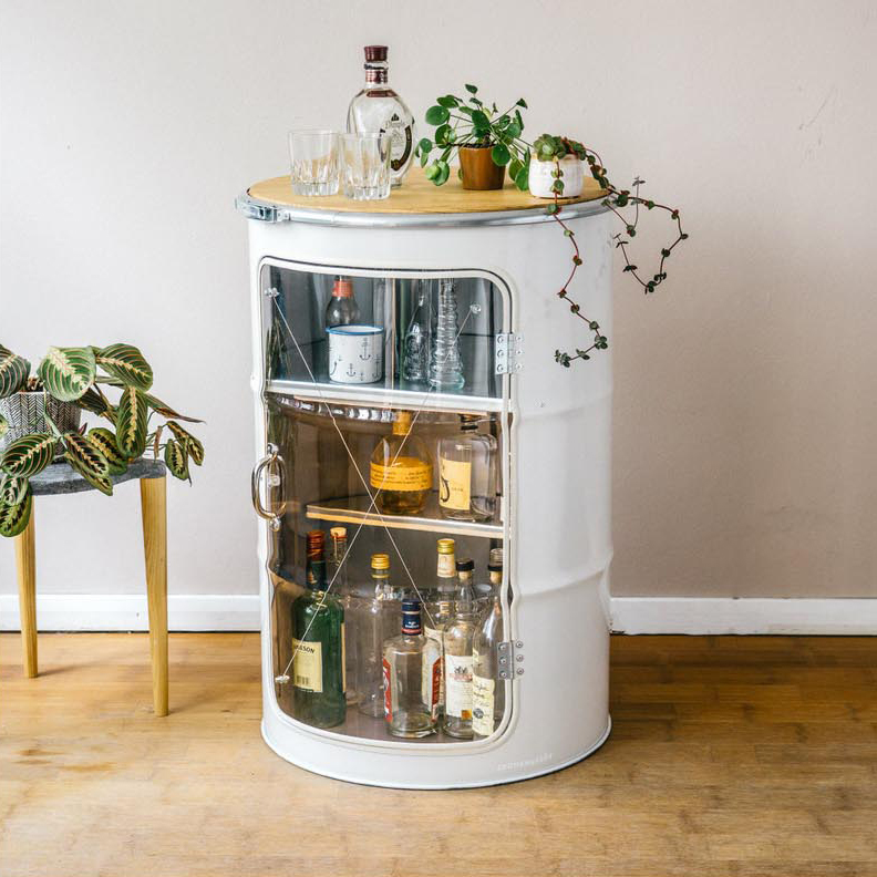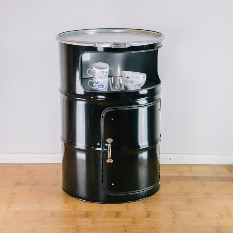 به گزارش گالري آنلاين، اولين کابينت بشکه نفت آنها حدود 15 سال پيش از بشکه نفت همسايه ساخته شد و اکنون آنها از بشکه هاي نفت فلزي بندر هامبورگ در آلمان استفاده مي کنند.