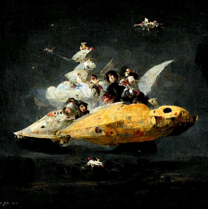 سبکها و تکنيکهاي متمايز آنها با موفقيت توسط نرمافزار هوش مصنوعي تقليد ميشوند و زبان بصري و جو نقاشيهاي اصلي بهطور متقاعدکنندهاي بازتوليد و براي ايجاد سفينههاي فضايي منتقل ميشوند.