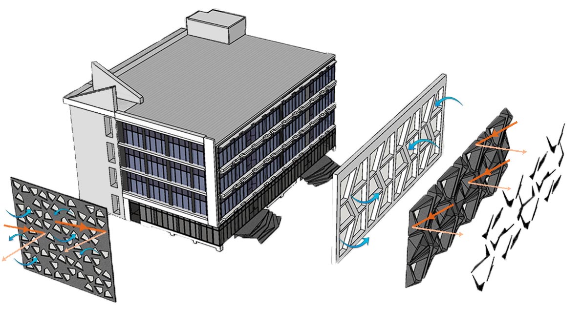 هر يک از بالکن ها به صورت متوازي الاضلاع طراحي شده اند، يک شکل سه بعدي که تمام وجه هاي آن متوازي الاضلاع است.