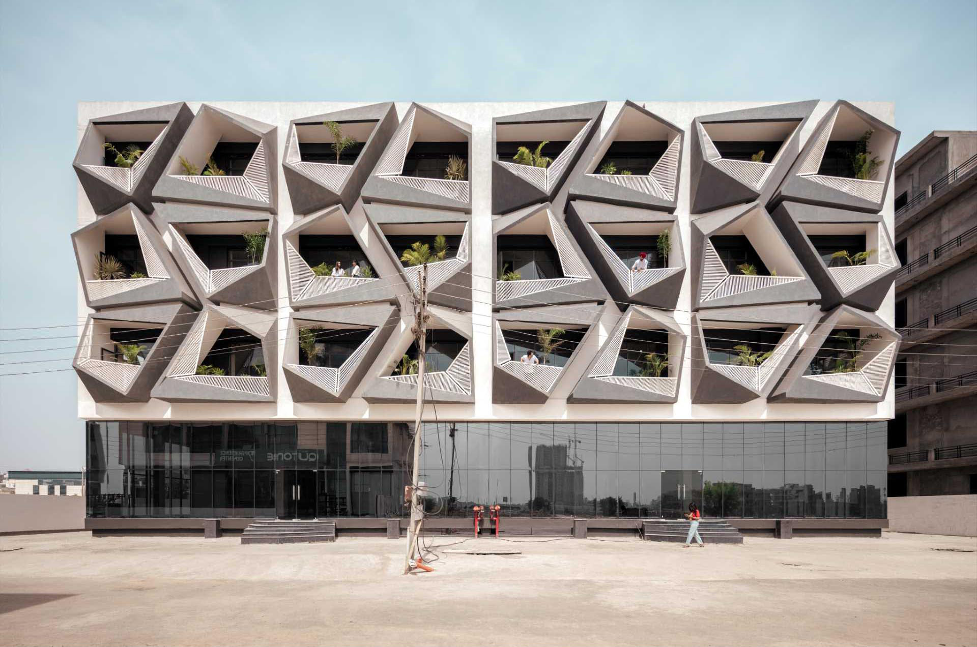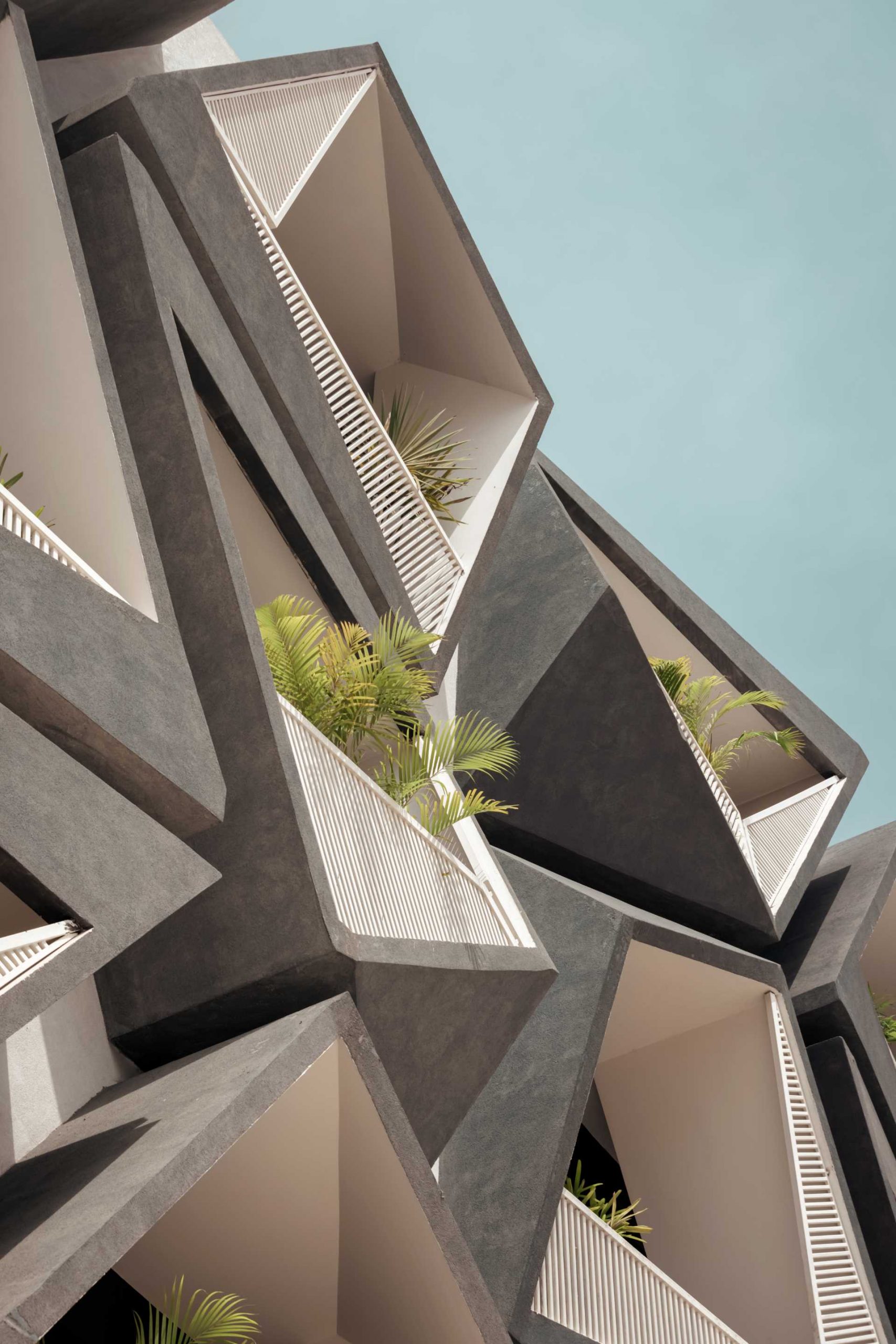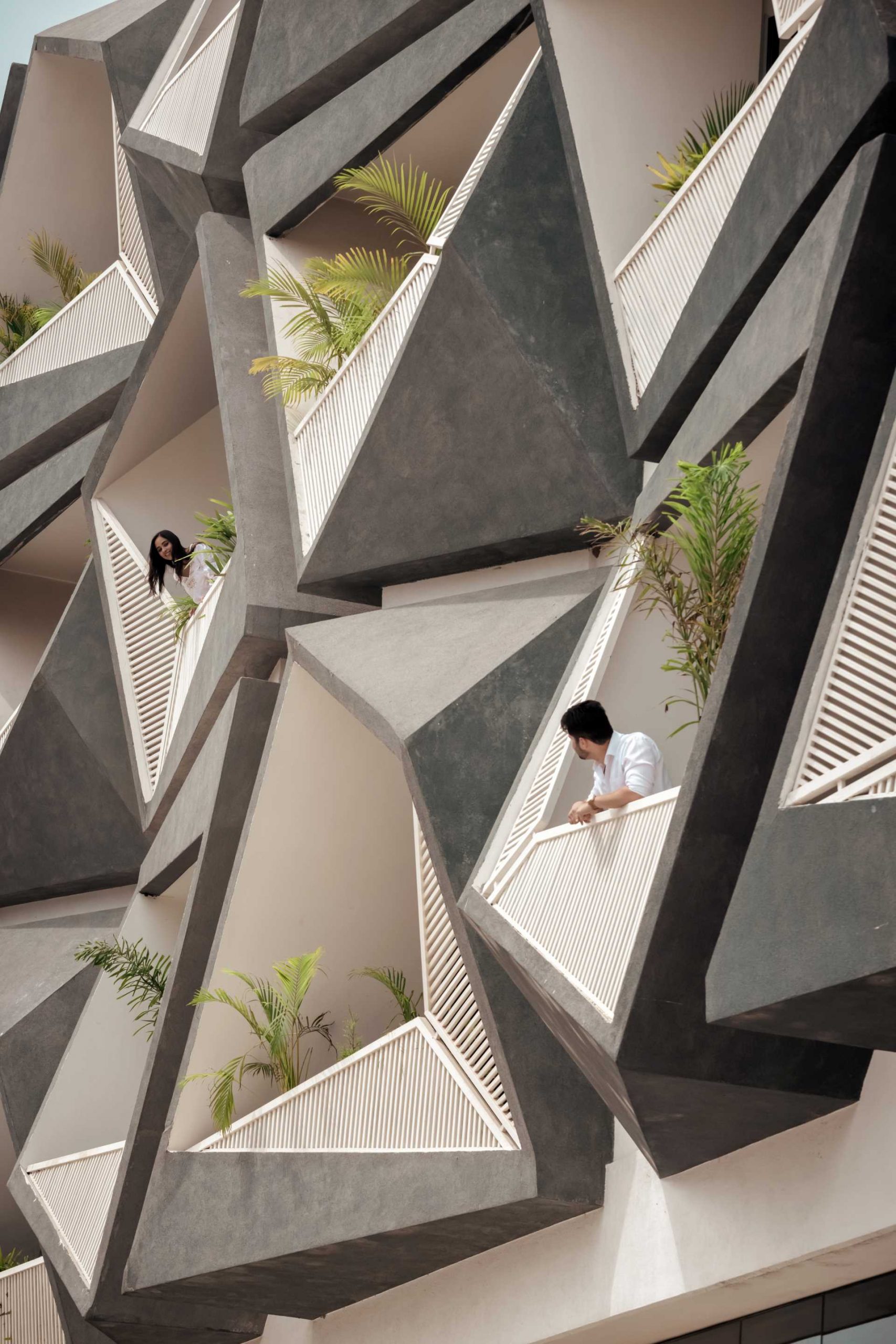 طراحي اين ساختمان که به عنوان يک مکعب ساده شروع شد، با گنجاندن اشکال منحصر به فرد در بالکن، تغيير فوق العاده اي کرده است.