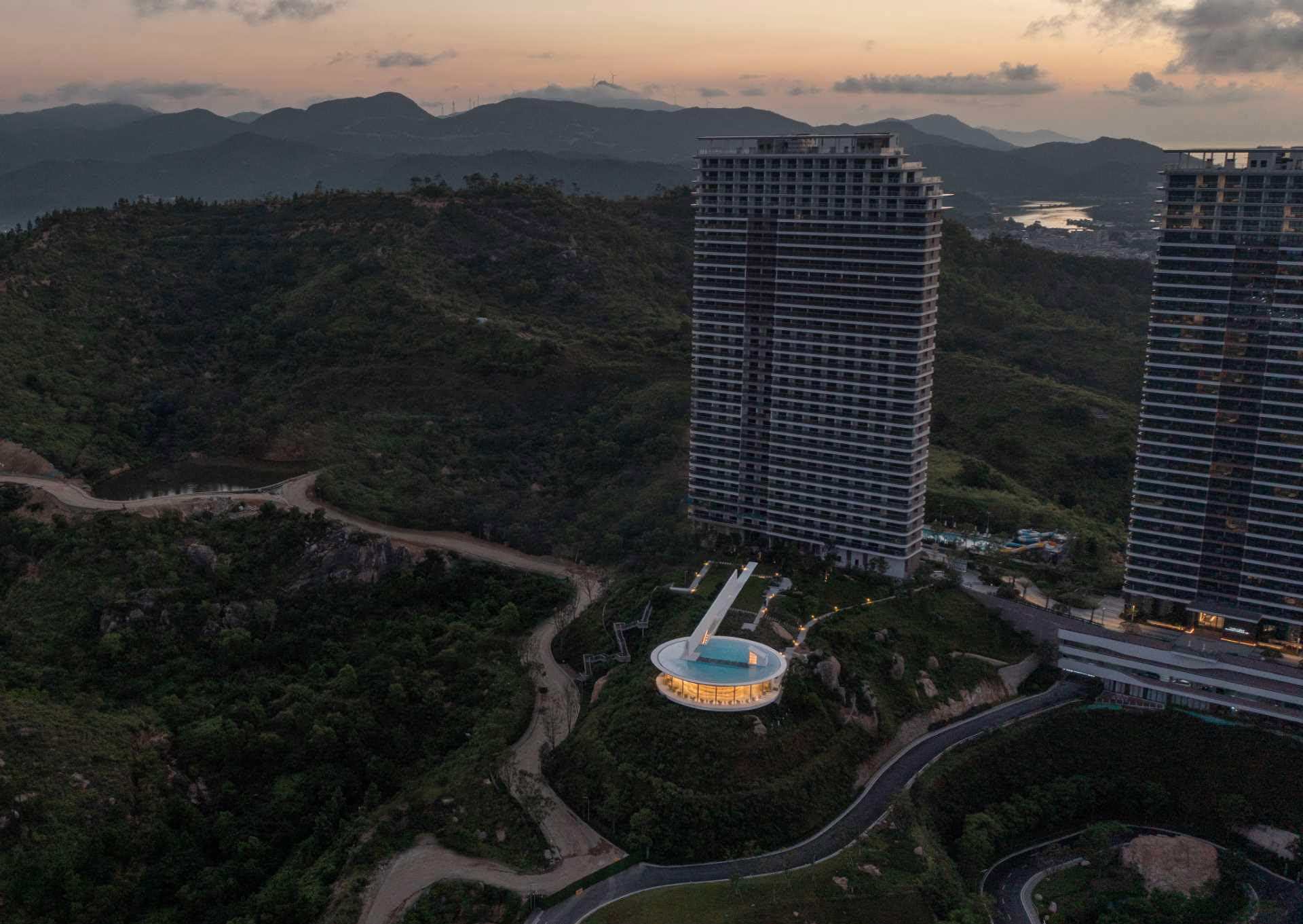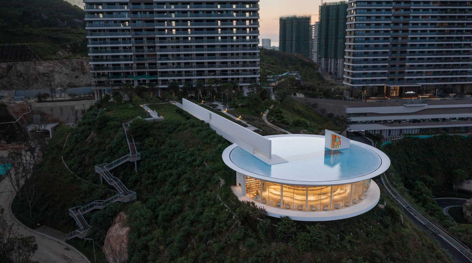 طراحان 3andwich Design همراه با He Wei Studio، کتابخانه قطره آب را که در پارک مرکزي خليج Shuangyue در شهر Huizhou، چين قرار دارد، تکميل کرده است.