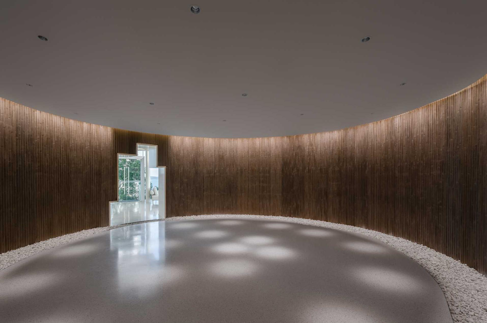 به گزارش گالري آنلاين، اين ساختمان در بالاي تپه قرار دارد و به سمت دريا است. طراحي گرد با سقف کاسه اي شکل، امکان ايجاد يک استخر کم عمق روي پشت بام را فراهم مي کند.