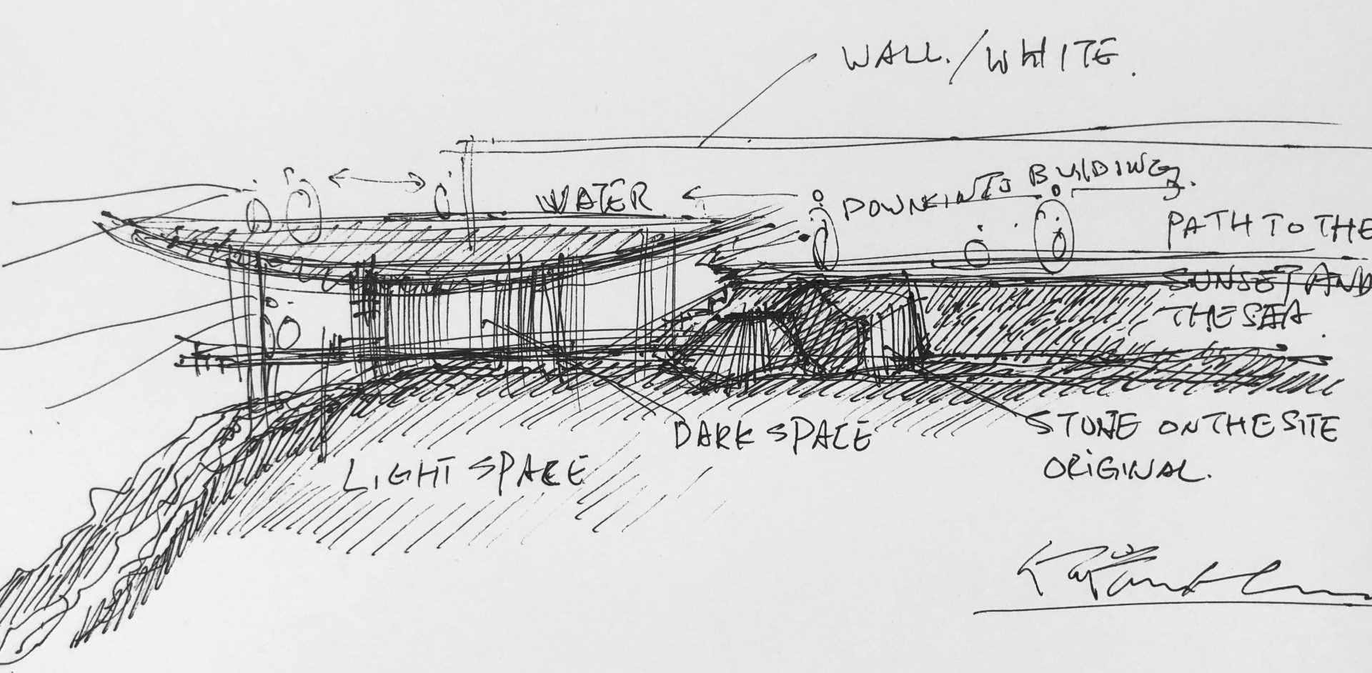 ميهمانان کتابخانه مي توانند مسير پنهان در سمت شمالي ديوار بلند را تا سکوي کوچک داخل استخر دنبال کنند.