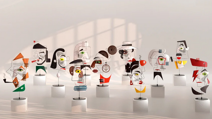 مجسمههاي ديجيتالي او به ويژگيهاي منحصربهفرد چهرههايي مانند فريدا کالو، ديويد بووي و پابلو پيکاسو، با پرترههايي که از ماده تهي شدهاند و به سايهها و فضاي خالي پويا اشاره دارد. اين ترکيبها که با ترکيبي از فرمهاي موزون و محدود به حرکت در ميآيند، دنيايي ظريف، منظم و شاعرانه را بيشتر تداعي ميکنند تا هويت ۱۹ قهرمان نمادين را آشکار کنند.