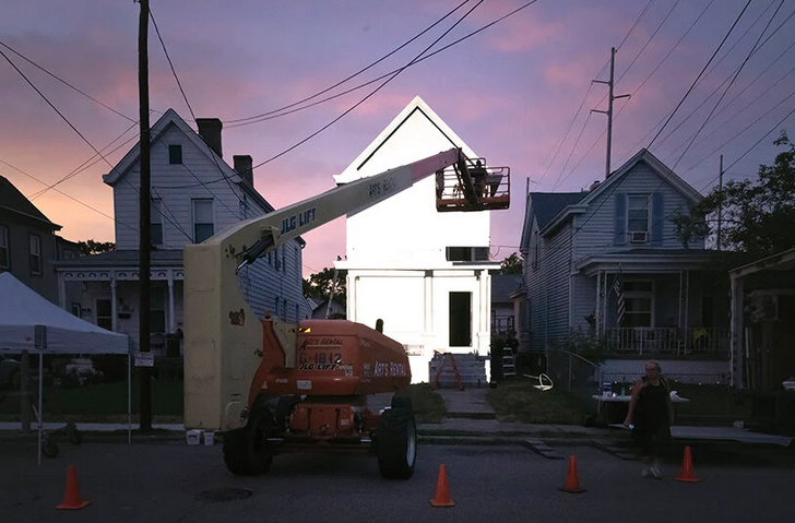 اثر اول، «خيابان لي»، سايهاي منحصر به فرد و به ياد ماندني از خانه را در سراسر خيابان و محله مياندازد، و دومي، «خيابان گردو»، خانه را به يک شبح سفيد درخشان از نور تبديل ميکند (ايجاد شده با پيچيده کردن دقيق کل آن. ساختار در يک ماده بازتابنده نور که معمولاً در علائم خيابان استفاده مي شود).