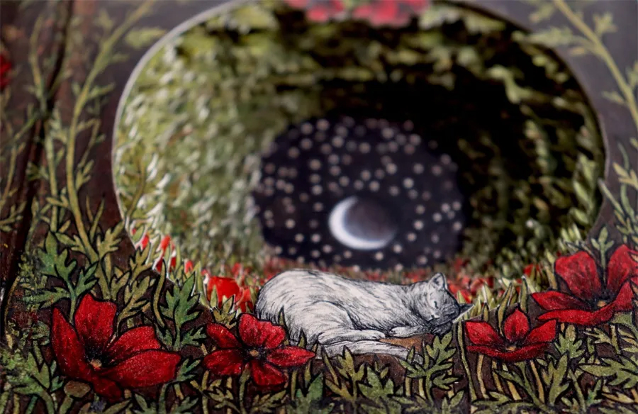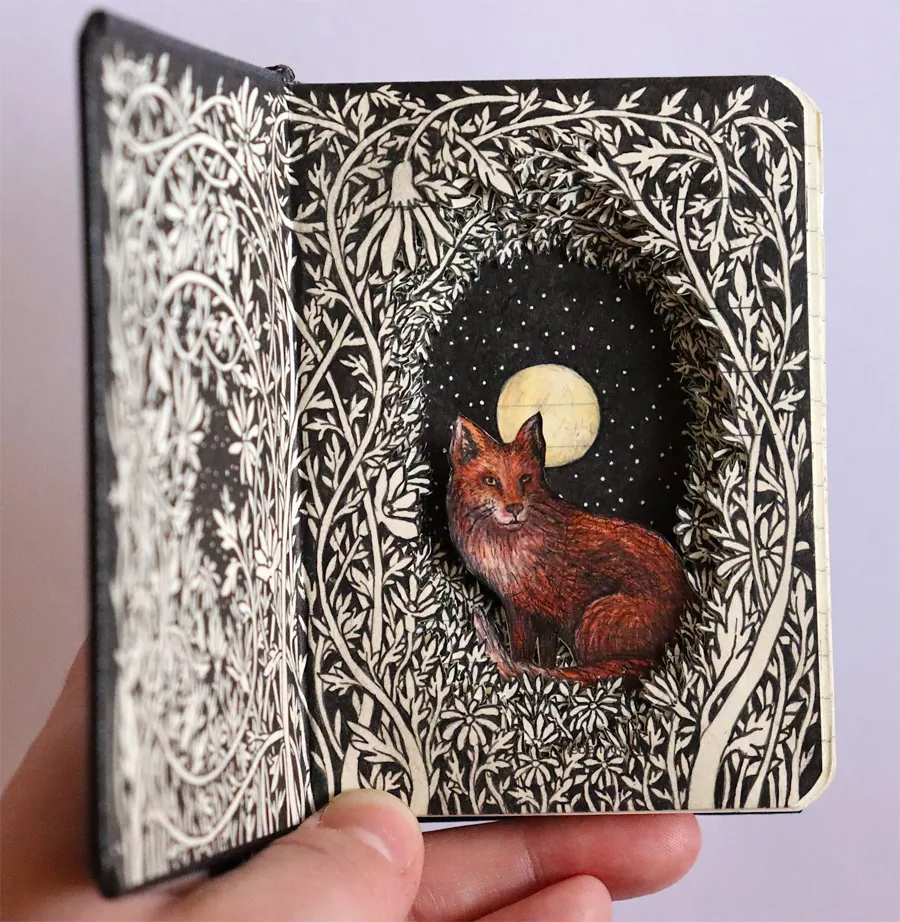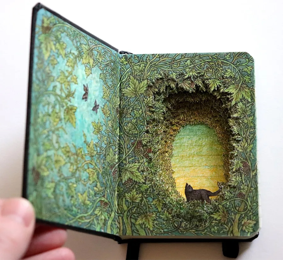 به گزارش گالري آنلاين، اين هنرمند ساکن براتيسلاوا، صفحاتي از رمانهاي پيدا شده و ديگر آثار را در هزارتوهاي کاغذي پيچيده جنگلها و مراتع حک ميکند. صحنههاي افسانهاي که اغلب توسط يک خرگوش يا روباه تنها اشغال ميشود، با حسي آرام و رازآلود در مورد محيطهاي خيالي و ساکنان آنها آغشته ميشود.