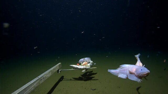 شناي حلزون ماهي در عمق بيش از ۸۰۰۰ متري زير آب در نزديکي ژاپن، در فيلمي که رکورد جديدي را براي عميق‌ترين شناي يک گونه از ماهي‌ها به ثبت رساند. عکس: مرکز تحقيقات اعماق دريا Minderoo-UWA