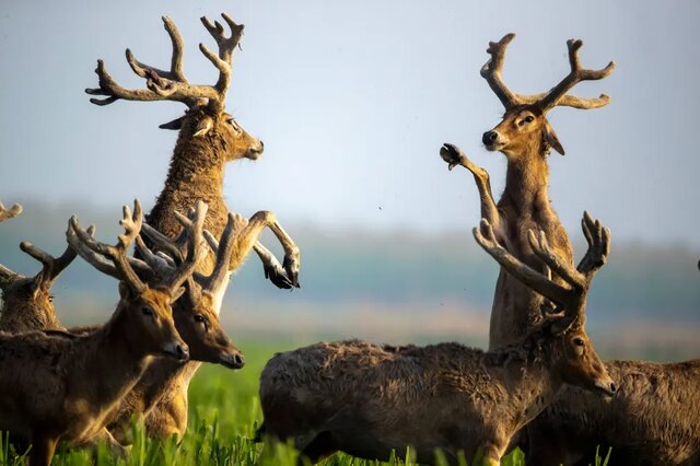 جينگژو، چين/ گوزن‌هاي آسيايي با نام الک در حفاظت‌گاه طبيعي شيشو