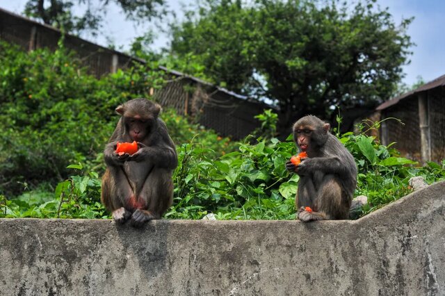 ميمون رزوس در حال خوردن گوجه در بنگلادش